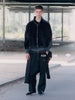 ドロップショルダーとゆったりとしたシルエットはリブの袖口と裾でまとめ、ジッパーの引き手に付いた長いタッセル付きドローコードはSong for the Muteのディテールをさりげなく演出。