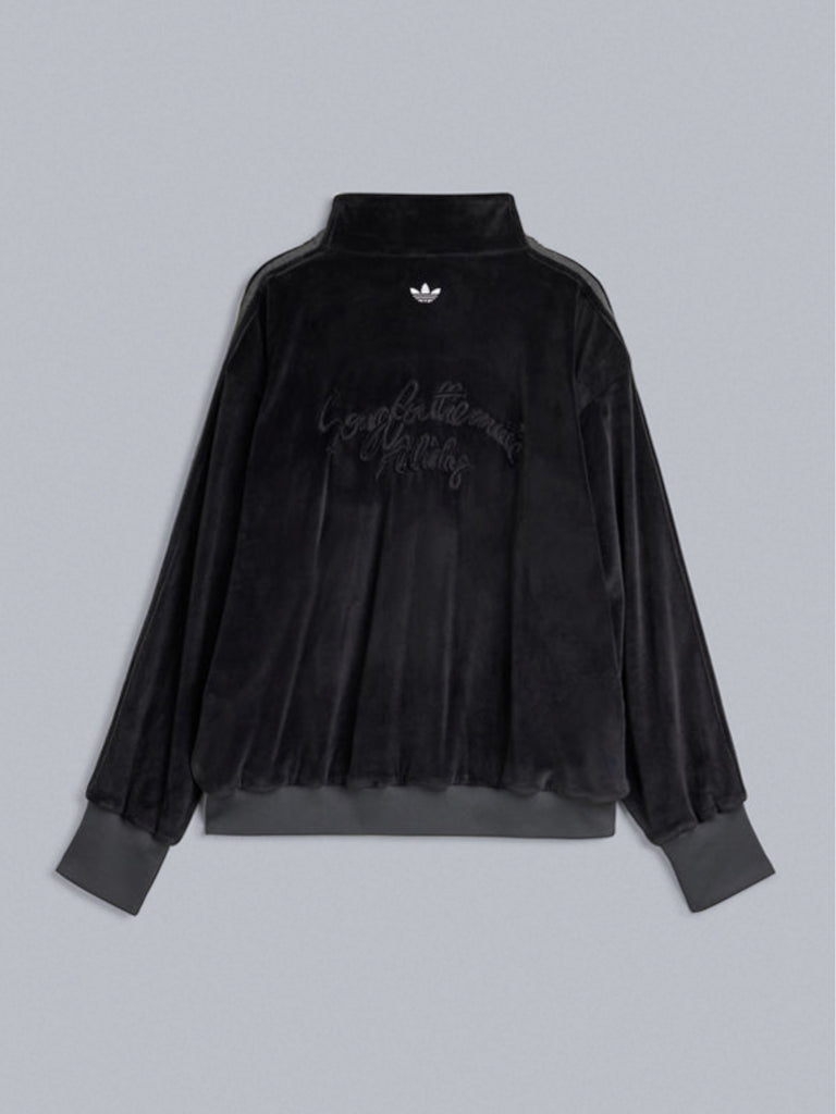 ボリューム感のあるベロア生地を使用したADI006TRACK TOPは、メインラインのティアドロップトラックジャケットを柔らかなシルエットと仕上げで再構築。