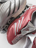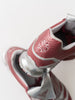 表面にアノダイズド加工を施した合成皮革アッパーに、メッシュのアンダーレイを重ねた、通気性と快適な履き心地を提供する作り。また、成型インサートが独特の質感を加えている。