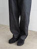 履き心地を考え、ワタリとヒップに少しだけ立体感とゆとりをもたせストレートに見えるシルエットでバランスを取って仕立てています。