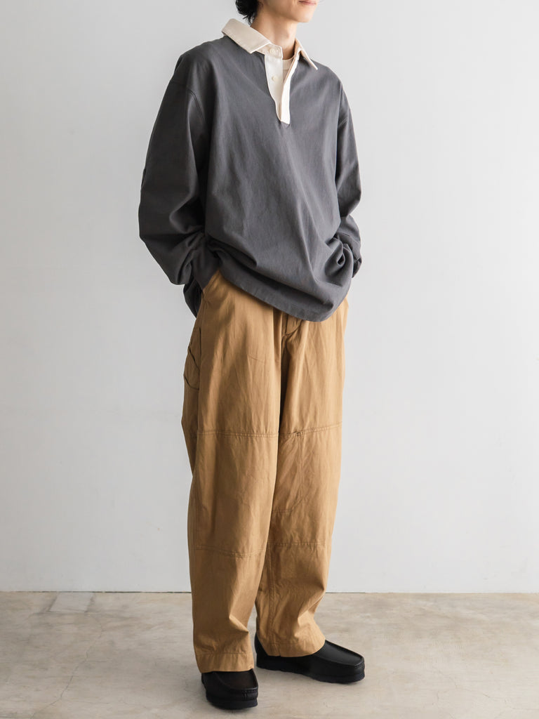 ワークパンツの様々なディティールを取り入れながらも、無骨に見えすぎず、どこか綺麗な印象を受ける絶妙なバランス感のデザイン。