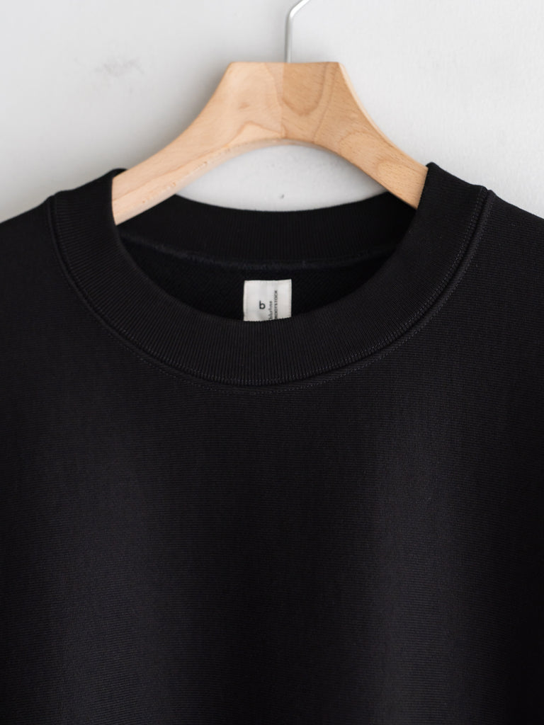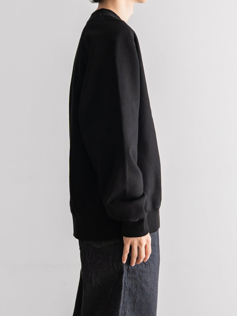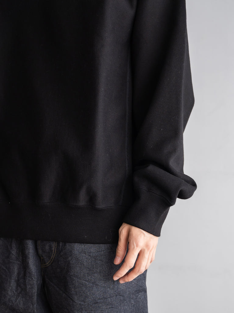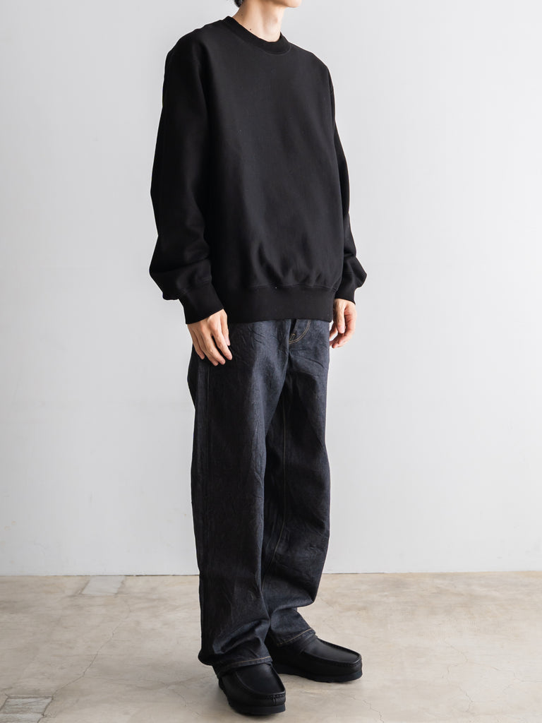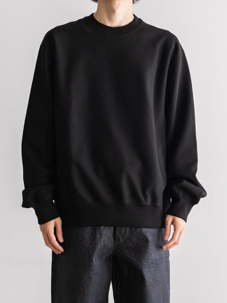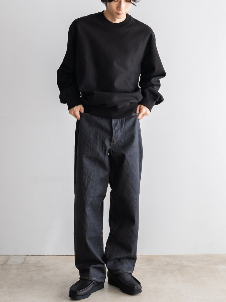 裏のループに無撚糸を仕様して肌触りをソフトに、表面は毛羽を抑え光沢が出るように、しっかりと限界まで度詰めをして、ハードな風合いで仕げているスウェット生地です。
