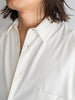 ⾝⼱、着丈、アームホールをゆったりととったシルエットに⼩さめの襟を合わせ、タックイン・アウトいずれにもマッチするバランス感に仕上げました。