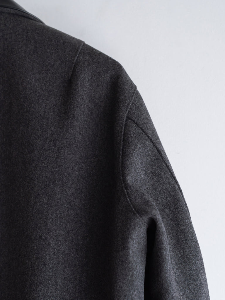 伝統的なデザインに現代的な要素を取り入れた一着です。生地のボリューム感を活かすよう立体的なフォルムを意識し、身幅や袖回りにゆったりと余裕を持たせた現代的なシルエットに仕上げています。