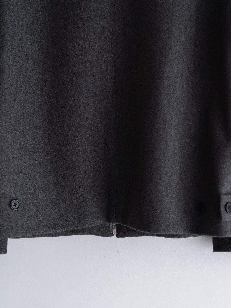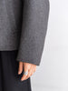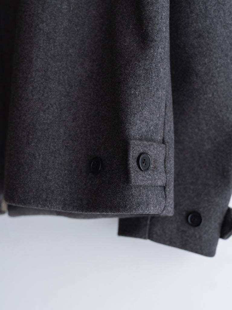 TOP染めしたグレー系の糸をしっかりと詰めて製織し、最終工程で熱と圧力をかけることでフェルト状に。