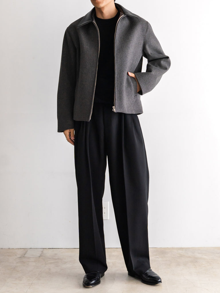 毛羽感の少ないコンパクトな表面感ながら重厚感とボリュームのある生地に仕上げました。
