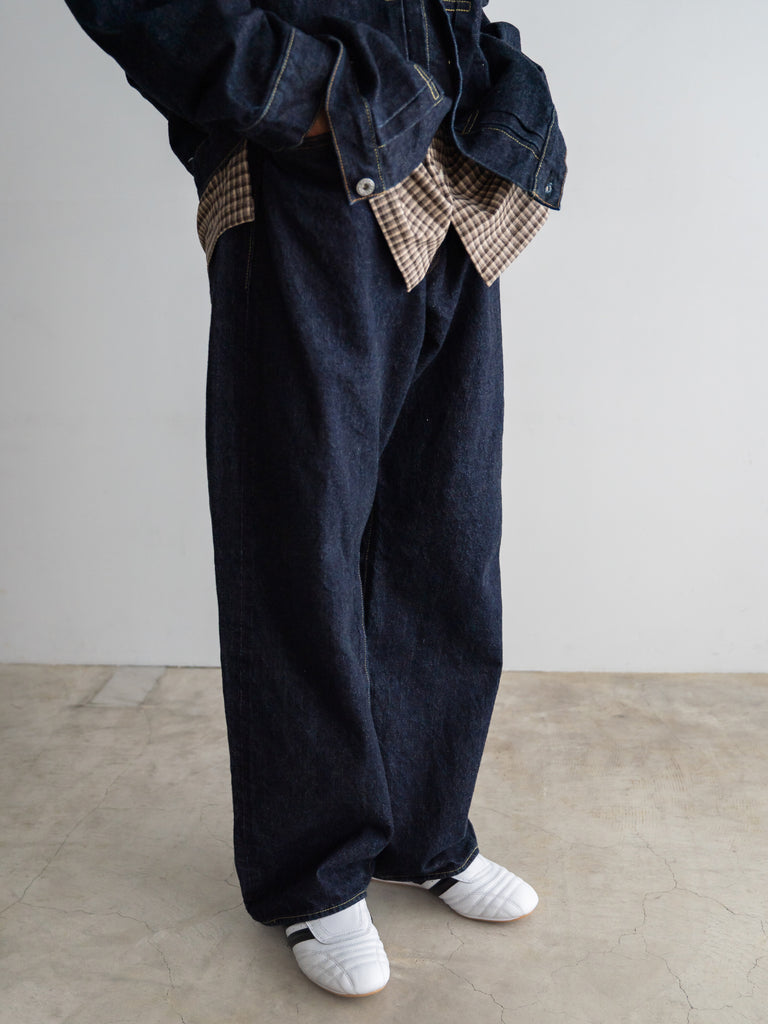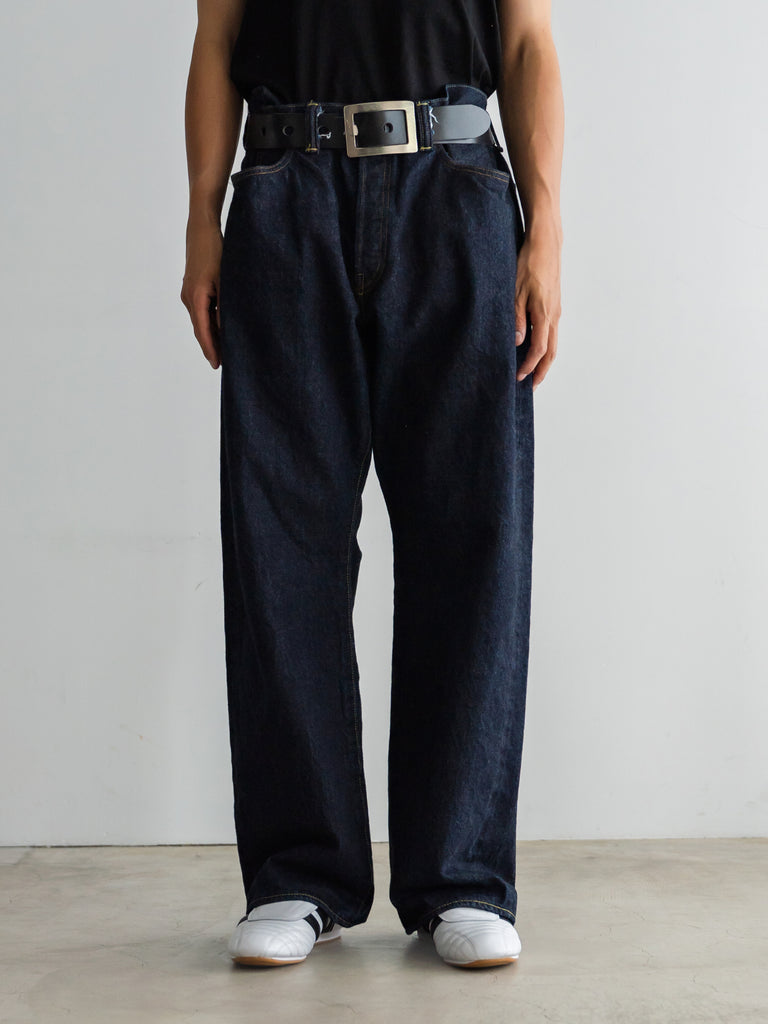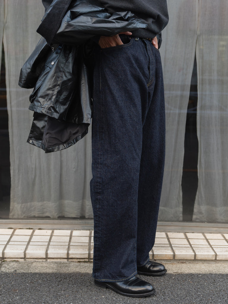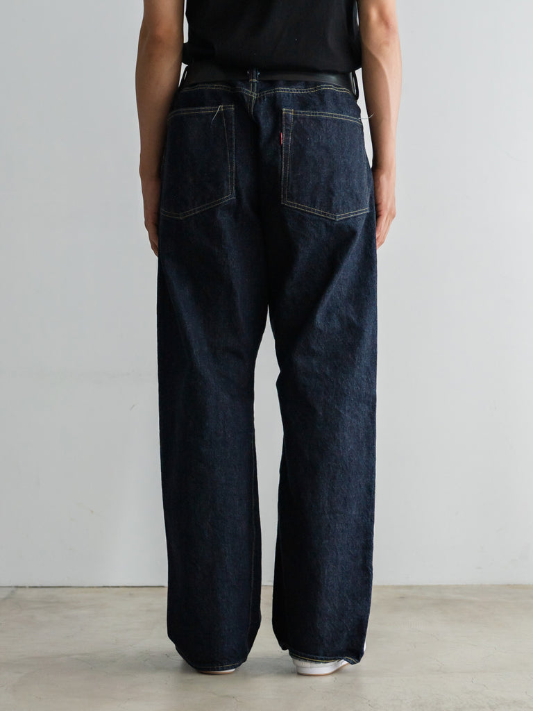 ヴィンテージの名作・⼤戦ジーンズをモチーフに、ハイパービッグサイズで再構築した⼀本。