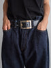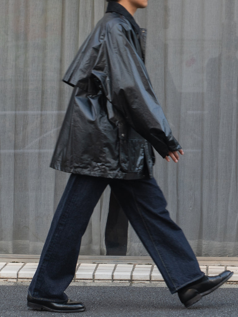 ⼤戦モデルのフォルムを踏襲しつつ、ウエストはベルトで絞る前提のワイドシルエットに。