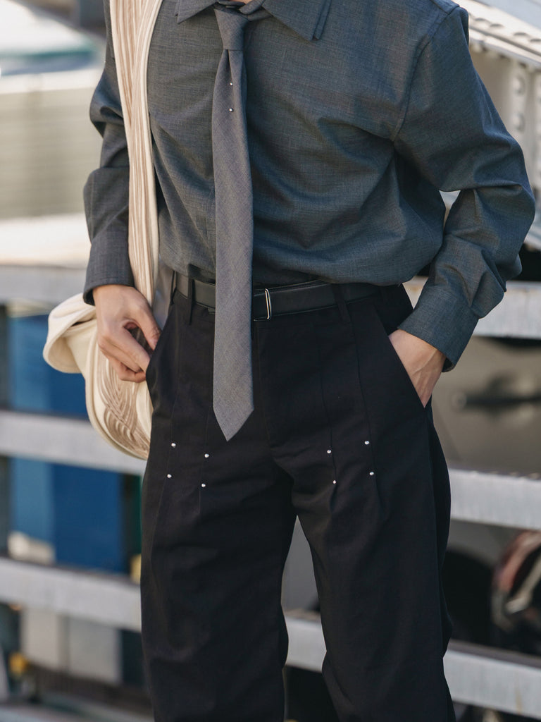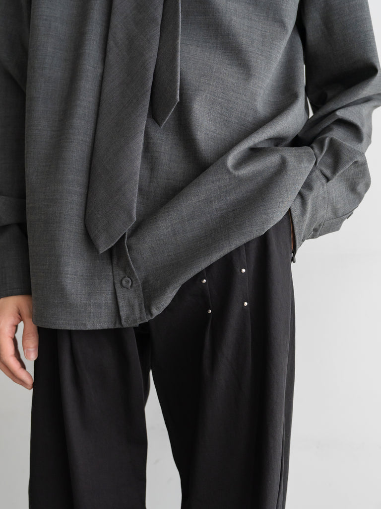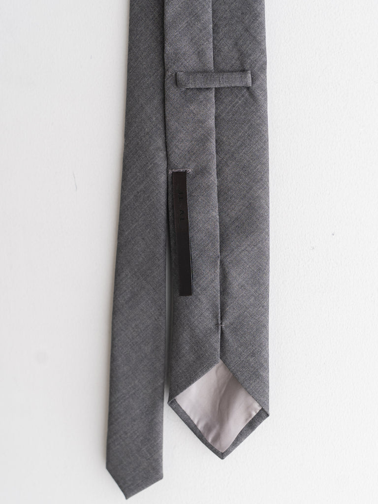 ドライメランジウールスーツ地で作られた Dorment Tie は、伝統的な生地構造とツインスタッドのディテールの組み合わせが特徴です。