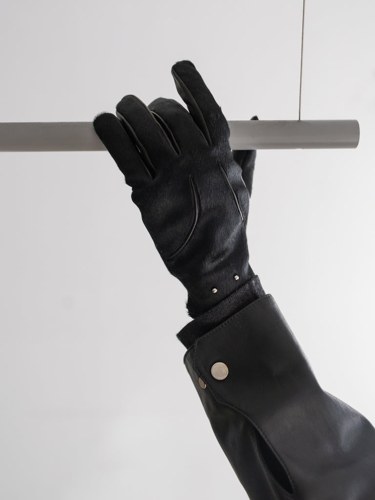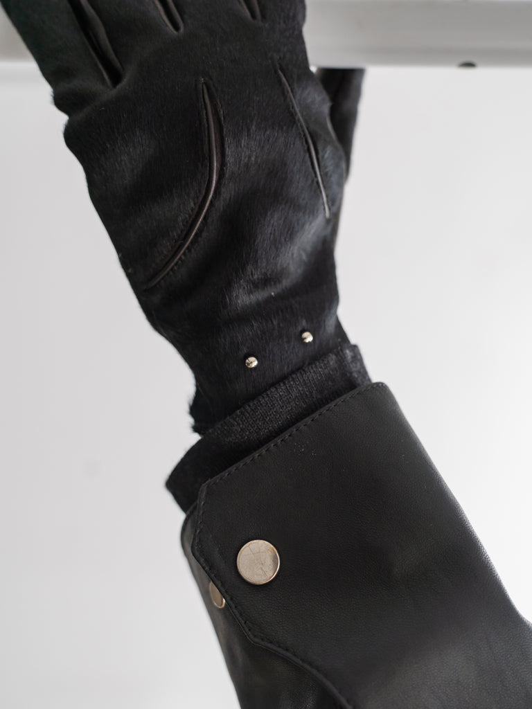 Topor グローブは、長毛のカーフレザーとラムレザーを組み合わせ、手首にツインスタッドのディテールをアクセントとしてあしらった、触り心地の高級感と機能的な洗練さを融合した、洗練されたコアスタイルです。
