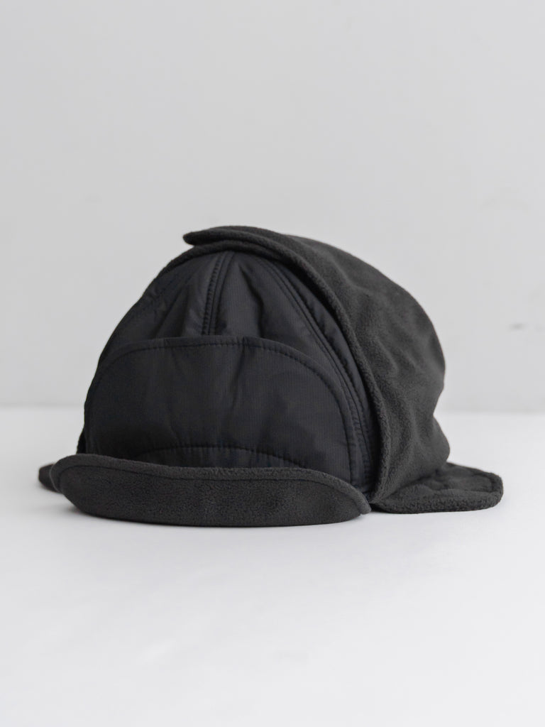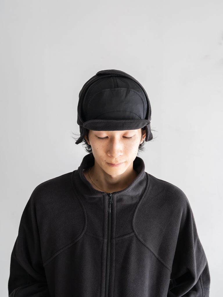 冬のアウトドアフィールドで活躍する耳当て付きフリースキャップです。