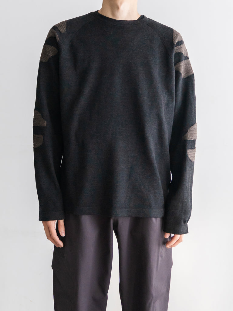 メディターTシャツは軽量ウール素材を使用し、背中とラグランスリーブにコントラストの効いたシーズングラフィックをあしらっています。
