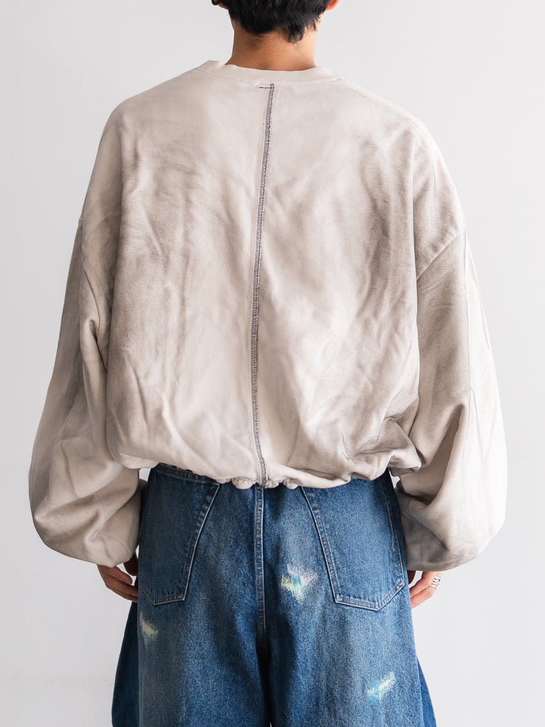 誰とは特定しない、それぞれが思う「彼」から借りたフィット感のスーパーオーバーサイズのプルオーバースウェット。