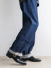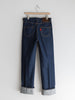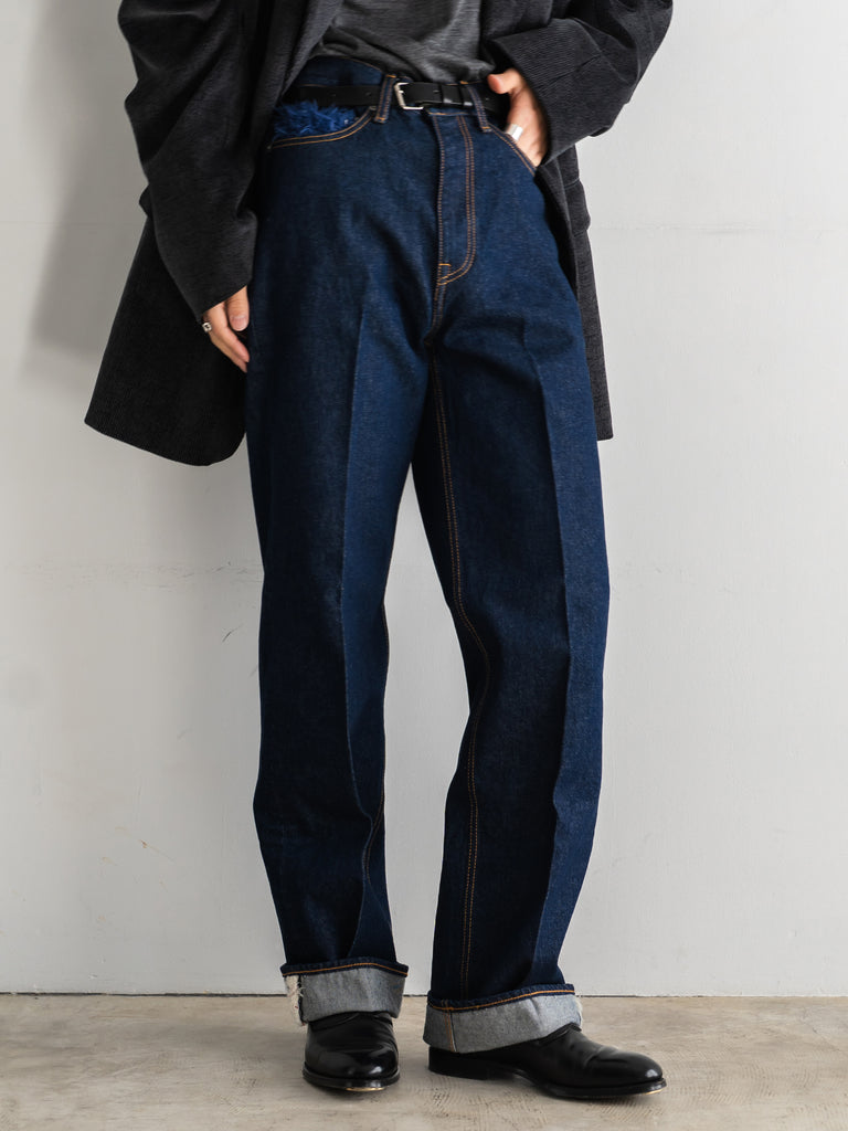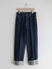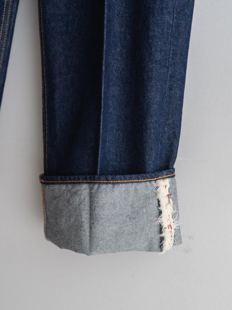 また赤耳が無い生地だったので、赤耳風のニットを裾の裏側に置いたので、ロールアップして履くとそれが見えます。