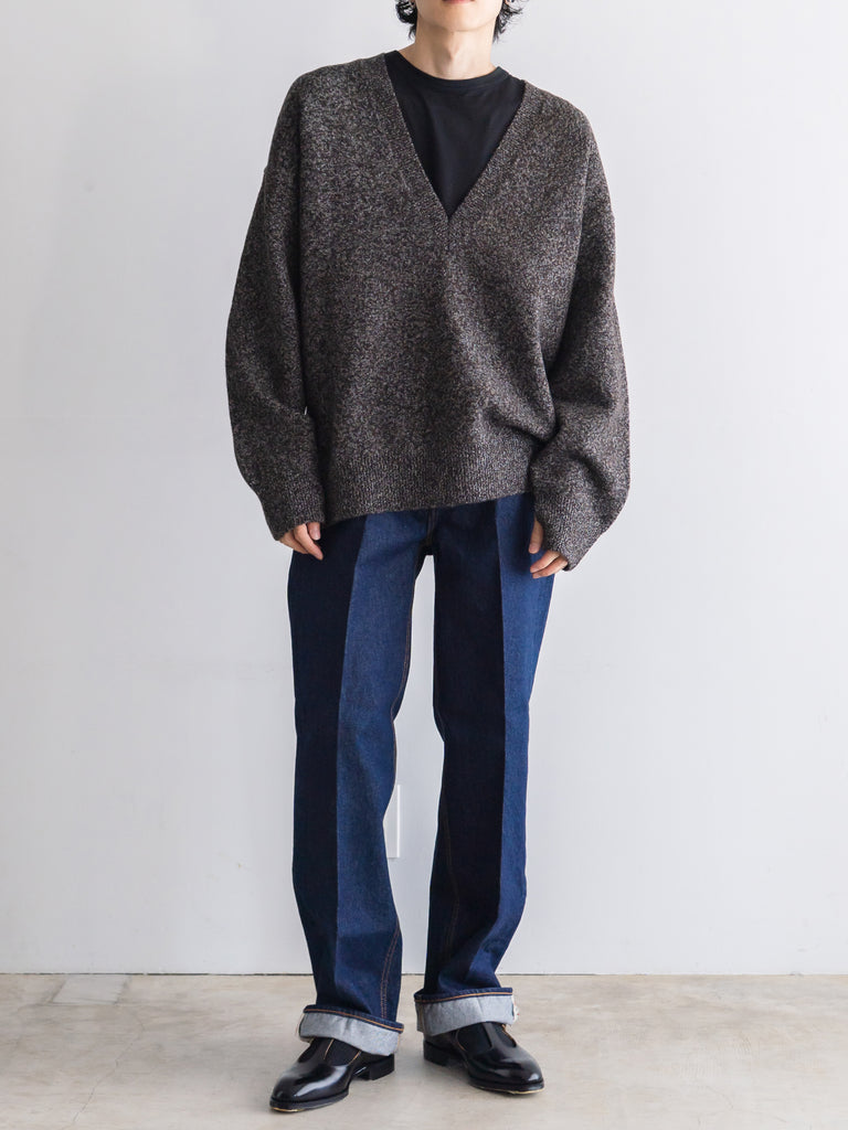 そんなことを考えている時に岡山のデニム工場からご連絡をいただき、ニットとデニム合うと思うんですよねと営業をいただき、ものは試しだとデニムを作ってみることにしました。