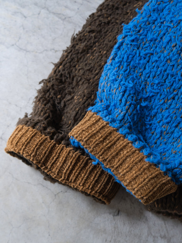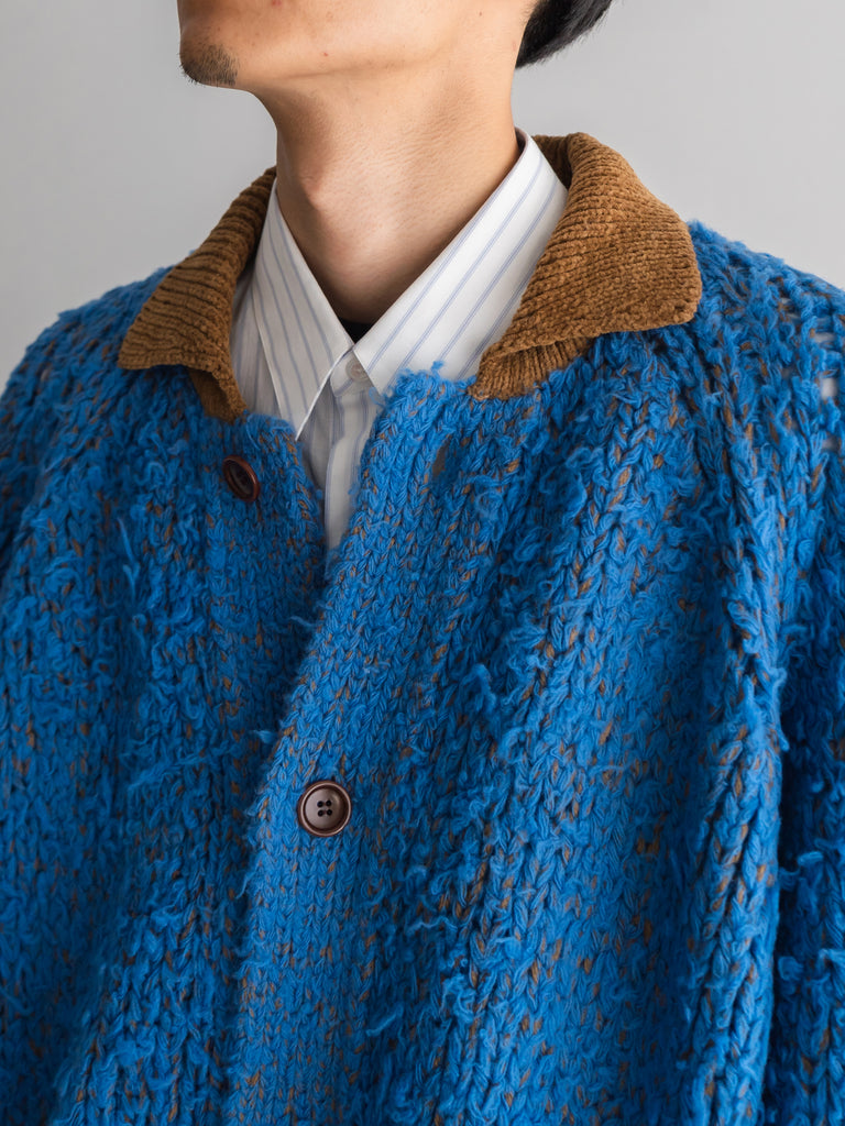 糸は見せていただいた糸を元にオリジナルで作っていただき、フィッシャーマンジャケットの衿がコーデュロイで可愛かったのでコーデュロイ風の糸をコーデュロイ風の色に染めていただき、衿にしました。