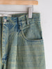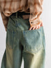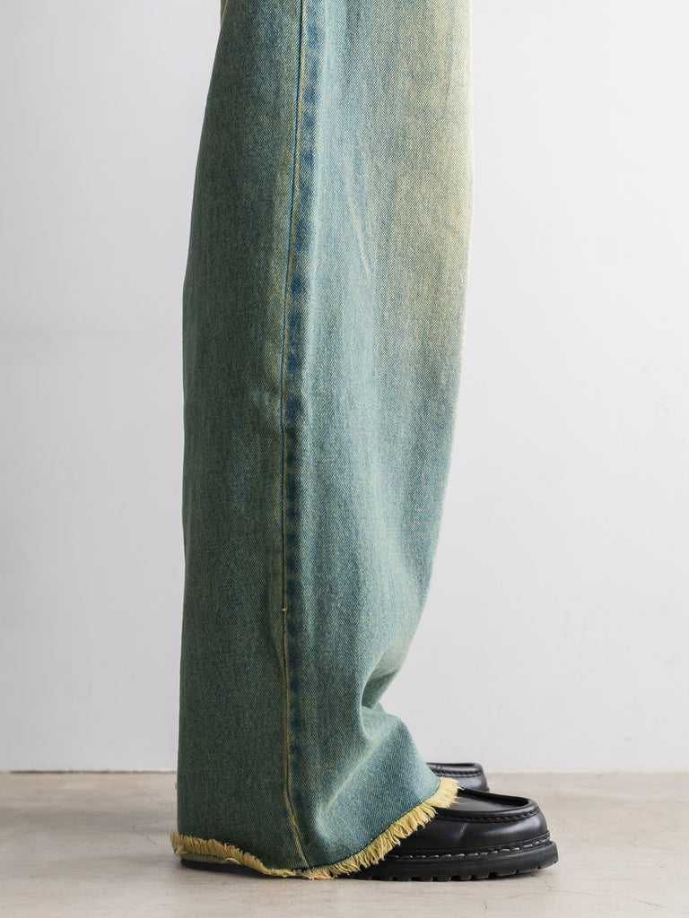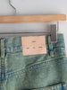 ディテールには、メタルスタッドのフロント留め具、ダブルステッチの縫製ライン、そして切りっぱなしの裾(ローヘム)を採用。