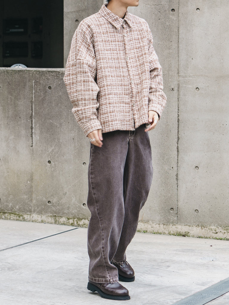 ワイドなシルエットに、ゆらぎのあるサイドシームが特徴的。