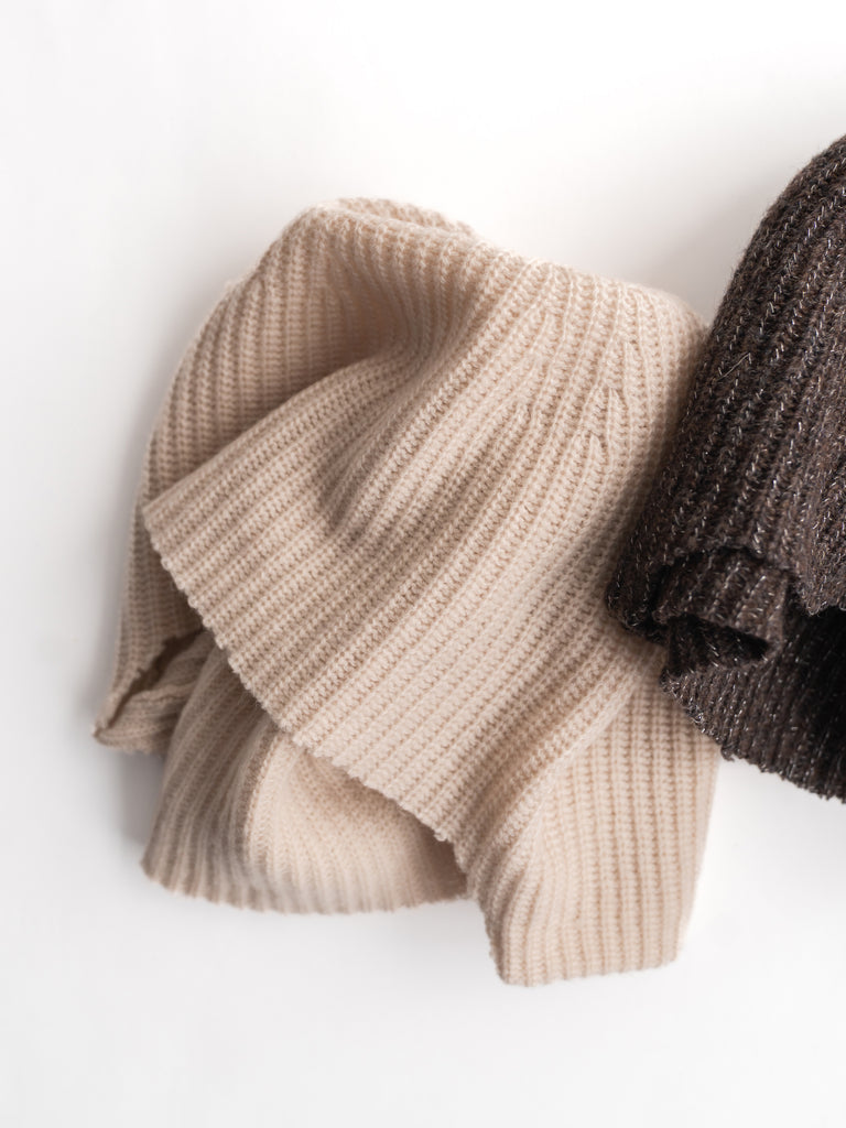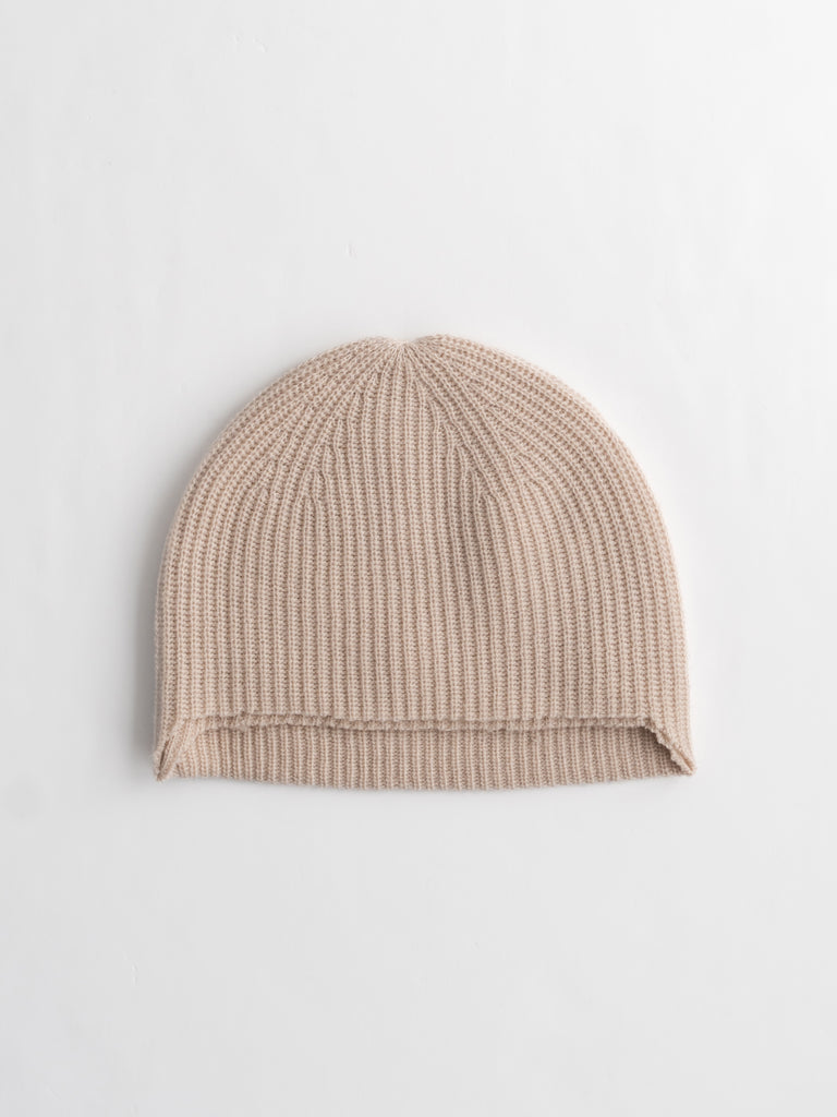 ラムウール混のリブ編みビーニー。
