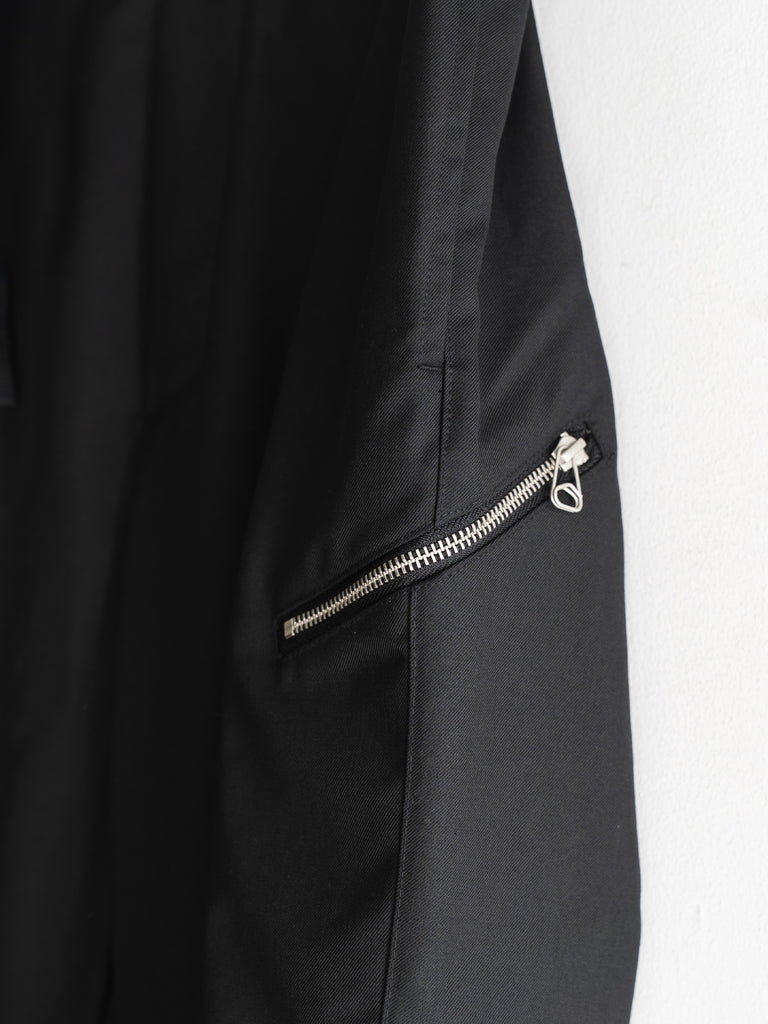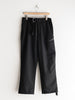腿部分にジップポケットが付くライトポリエステルキャンバス地のストレートパンツ。