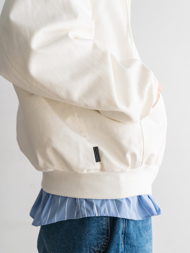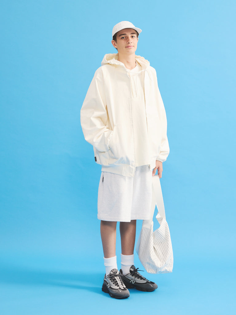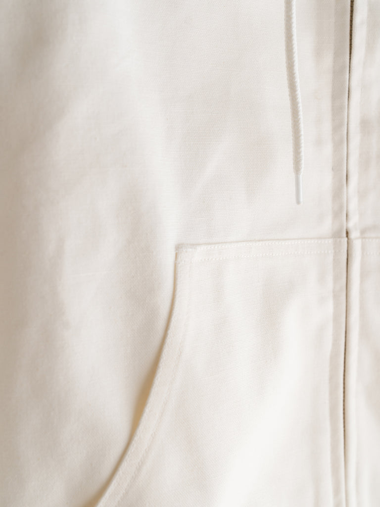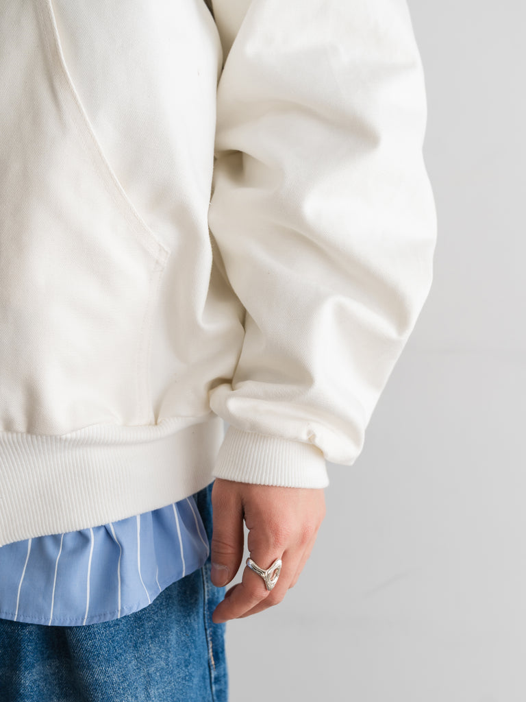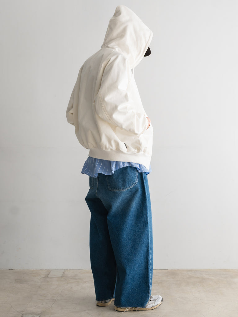 ワークジャケットでありながら、余計なディテールは取り除きクリーンなイメージに仕上げたオーバーサイズのダックフーディージャケット。