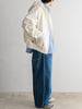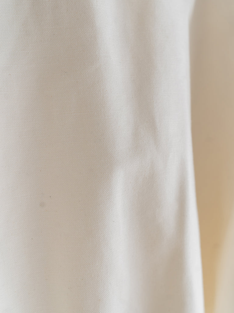 ヴィンテージ特有のヨコムラの出方にこだわった素材で、芯まで染まり切らない特殊染色により、加工感がより出るようになっています。