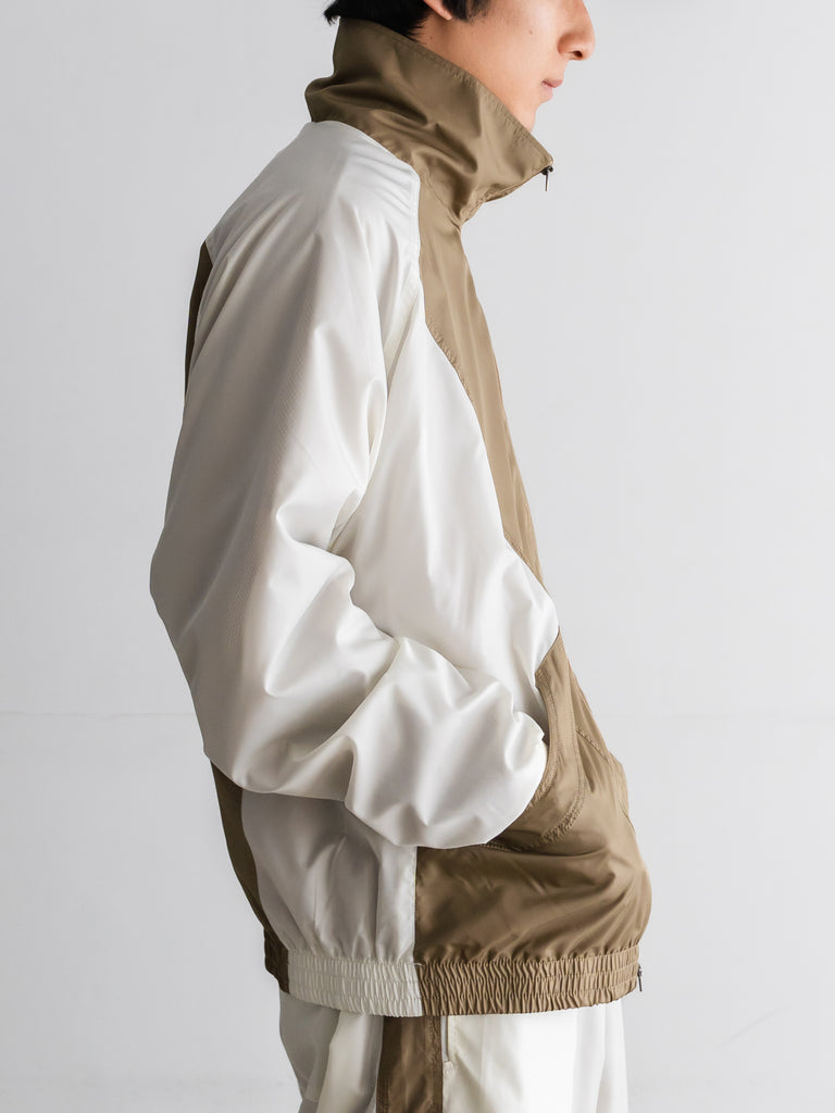 80年代~90年代のDUFFERのトラックジャケットをリファレンスにNEPHEWSとしての新たな配色パターン施したブルゾン。
