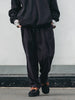 腰回りを大きく、裾幅を広く、ワイドなシルエットにアレンジしたタック入りワイドテーパードフリーパンツ。