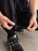 素材の特徴に加え、ウエスト、裾にドローコードを配し動きやすい仕様にしております。