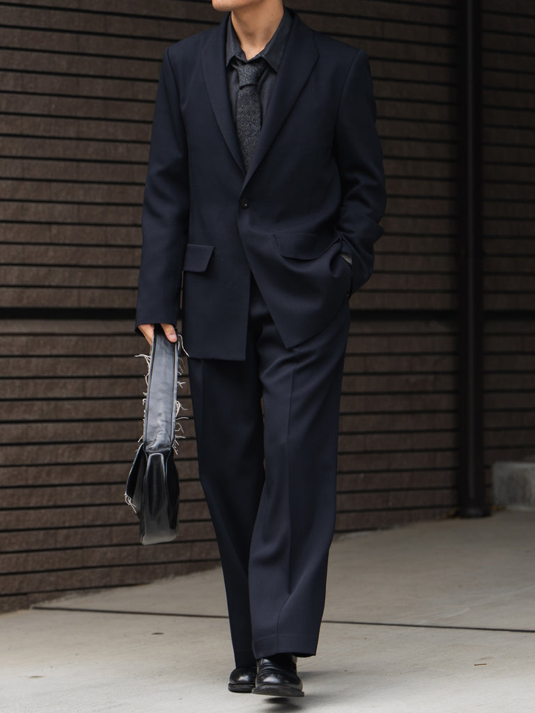 ◎生地は尾州産地にて、強撚のファインメリノウールで作られた朱子織の素材です。