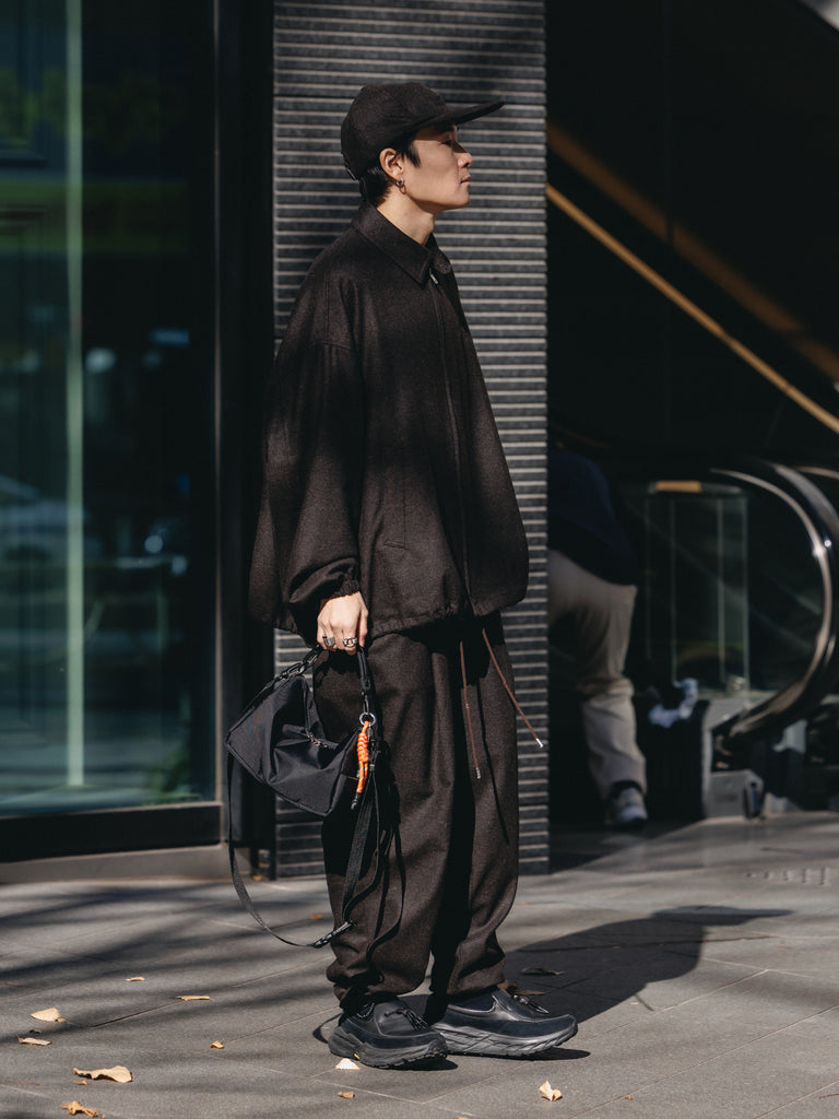 裾にはアジャスター付きのドローコードが備わっており、スタイルに応じたシルエット調整が可能。