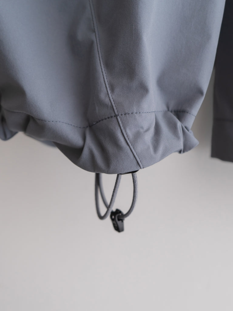 小松マテーレの超耐久撥水加工「ダントツ撥水」と、超軽量コーティング加工「サイレントコーティング」を付与することで、 軽量ながら高い撥水性と防風性を備えている。