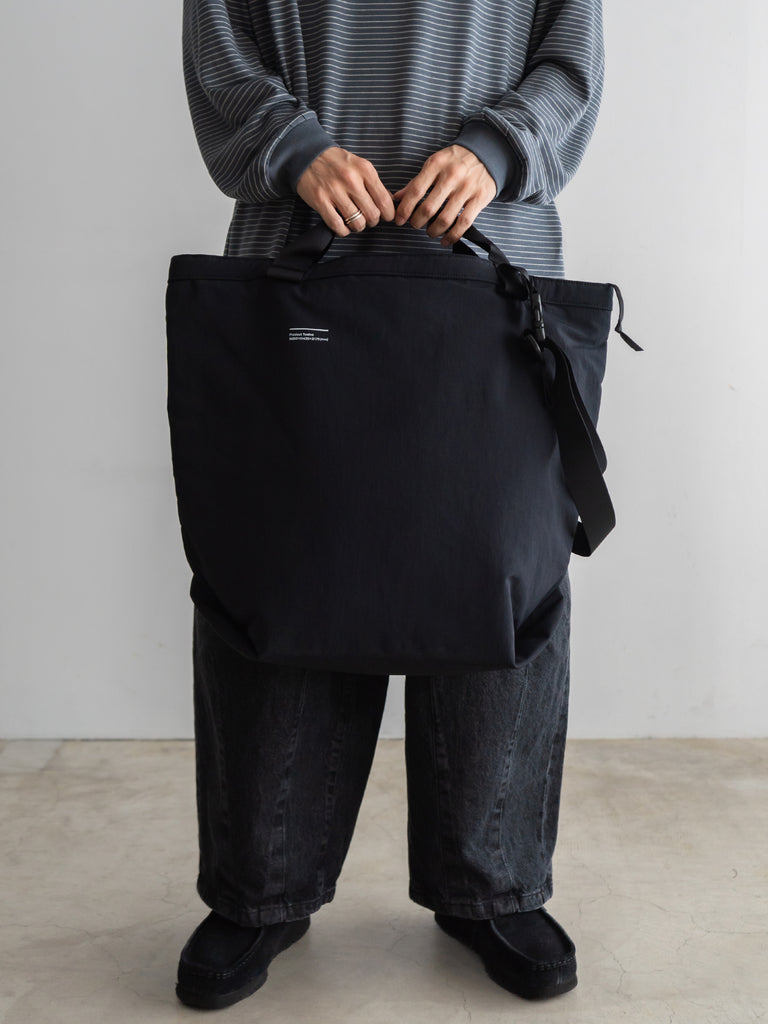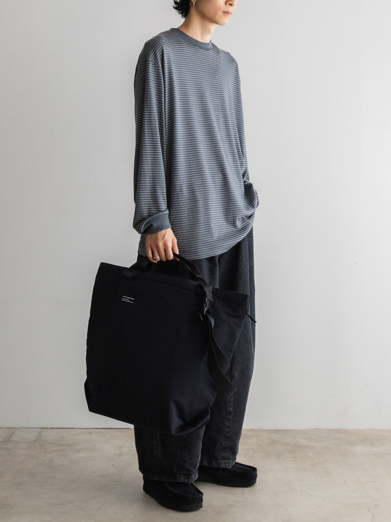 斜め掛け、肩掛け、ハンドル手持ちの3wayに対応したトートバッグ。