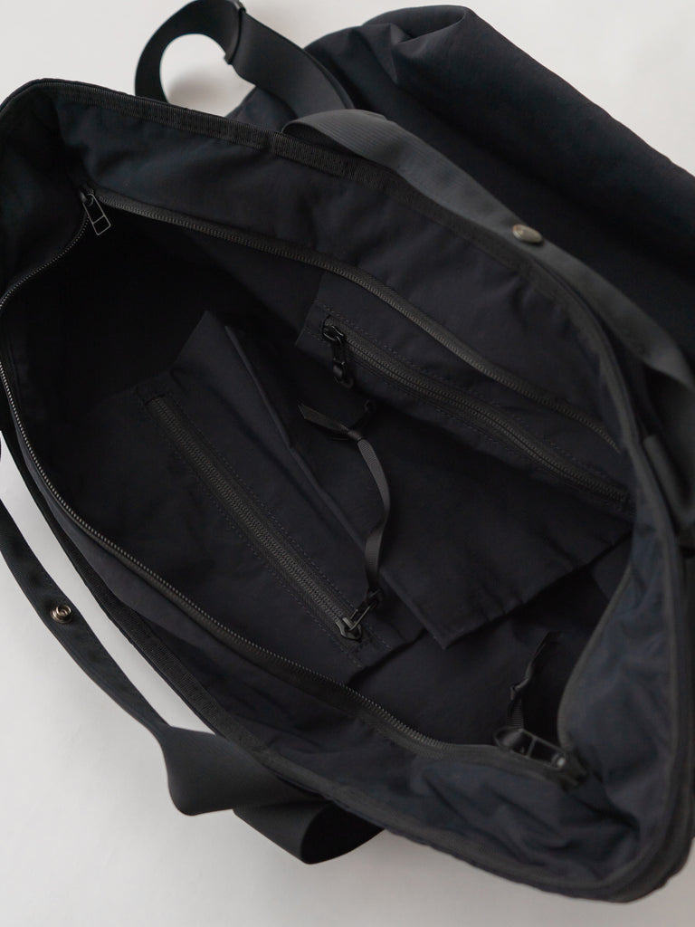 ファスナー付きの天マチをつけることで、大容量かつ物を落とす心配を軽減。