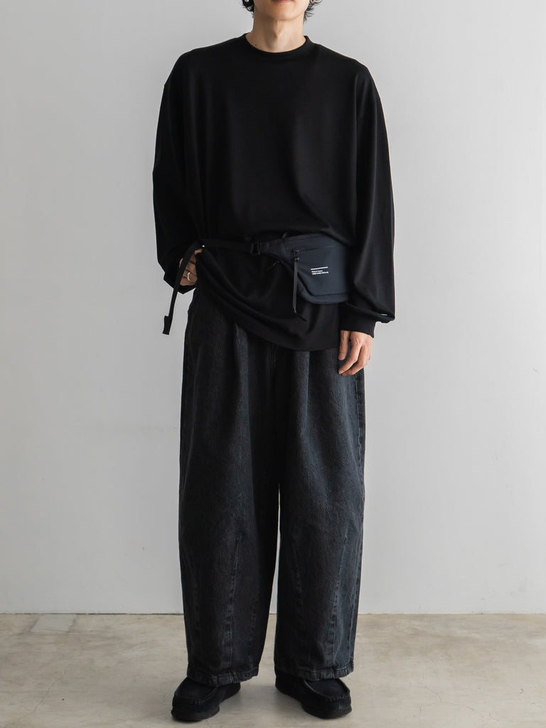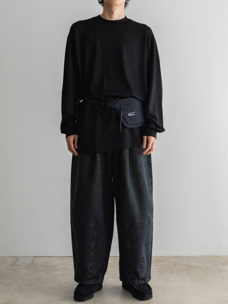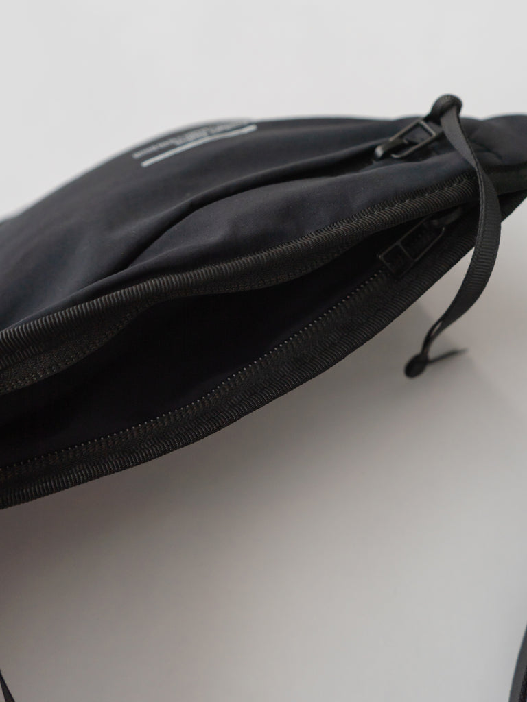 アウターを上から羽織れるよう考慮した、極薄マチ仕上げのウエストバック。