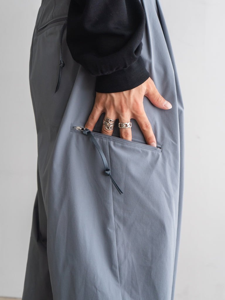 小松マテーレの超耐久撥水加工「ダントツ撥水」と、超軽量コーティング加工「サイレントコーティング」を付与することで、 軽量ながら高い撥水性と防風性を備えている。