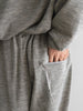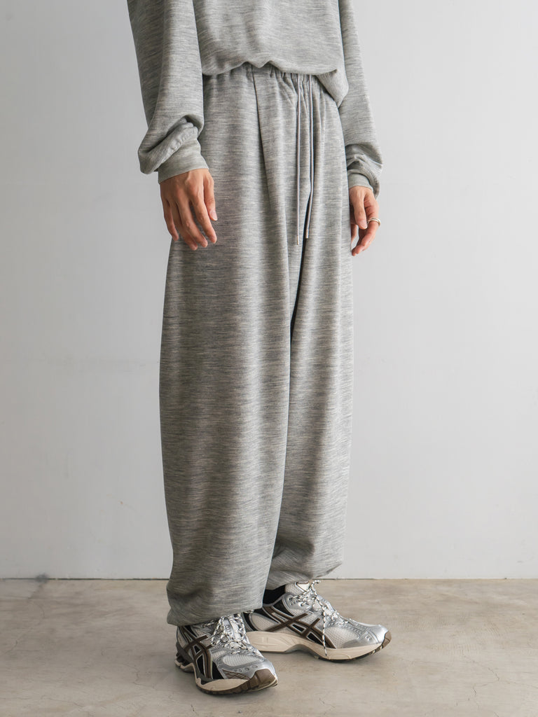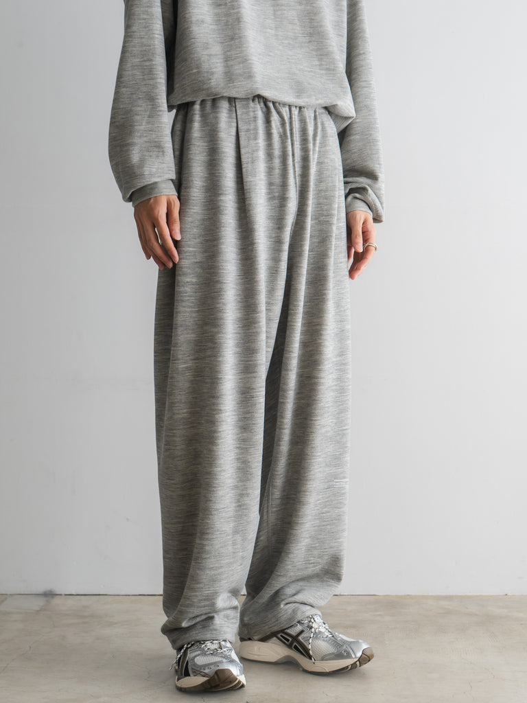 ワイドなシルエットかつ脇に縫い目を無くすことで、パジャマのようなコンフォータブルな履き心地に。