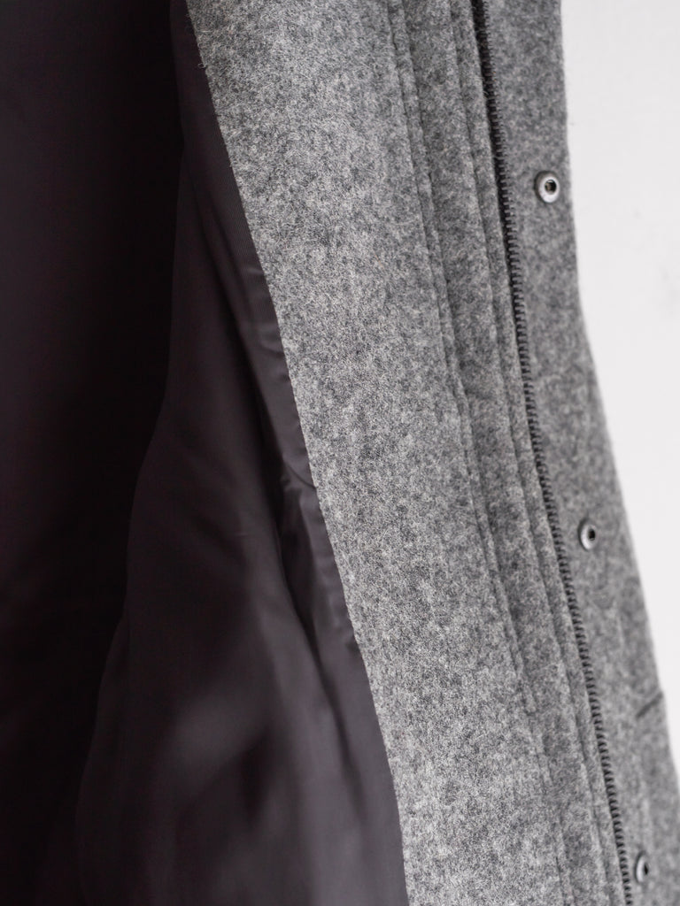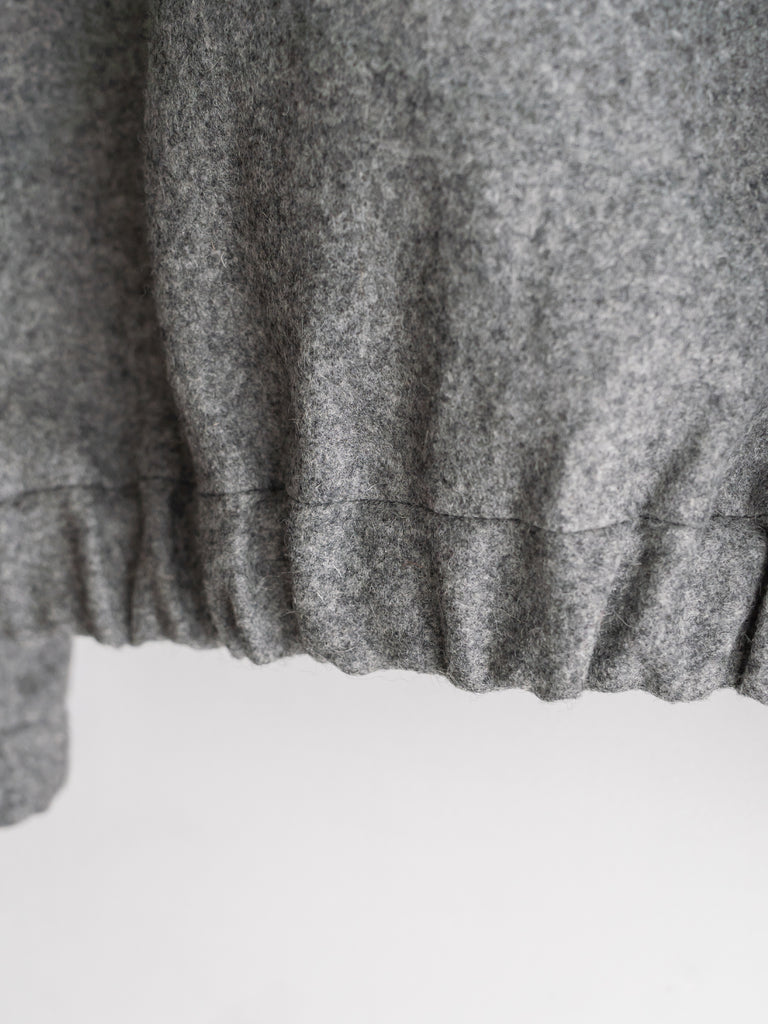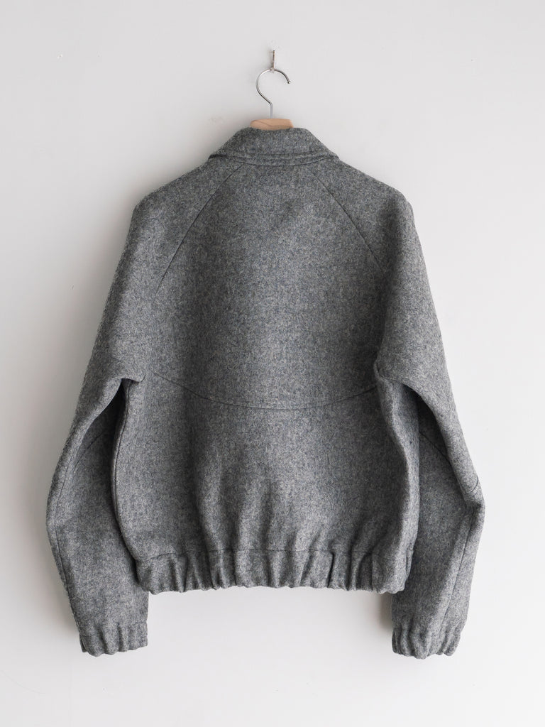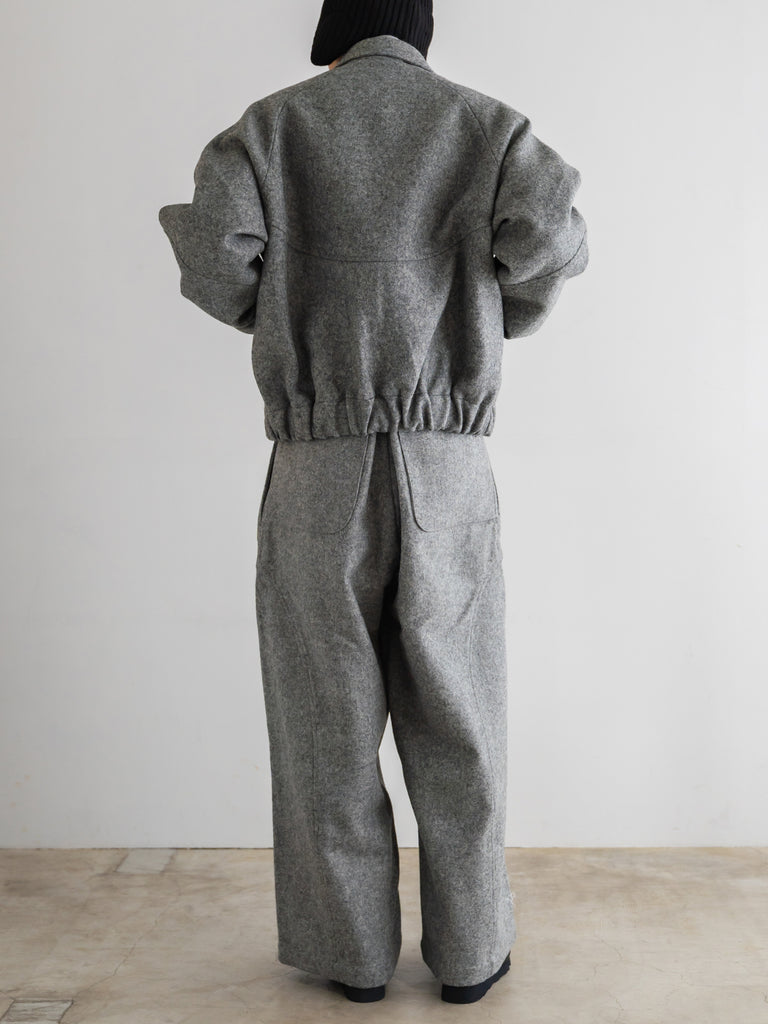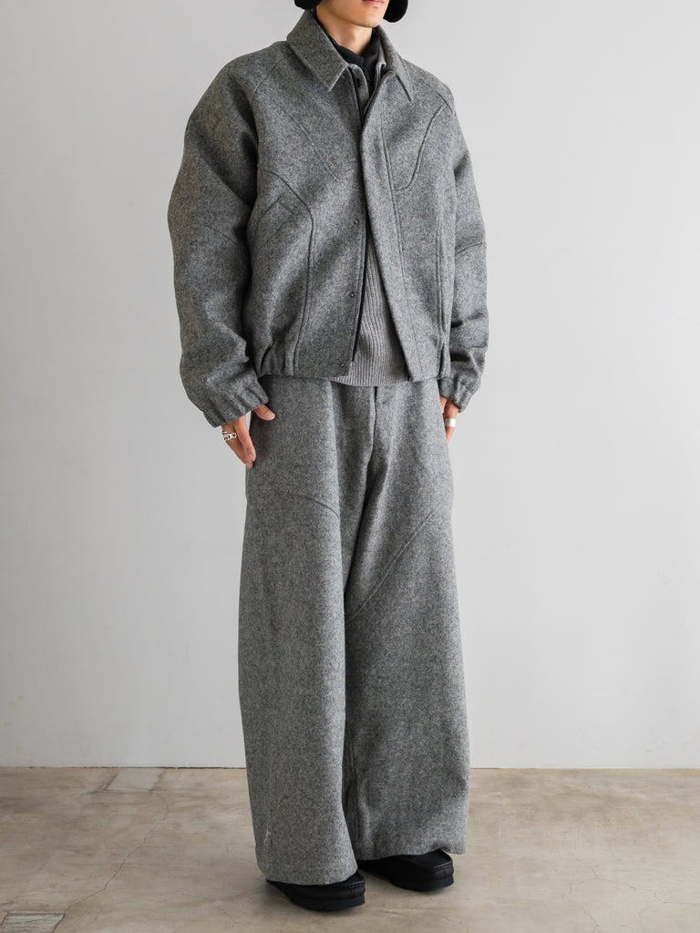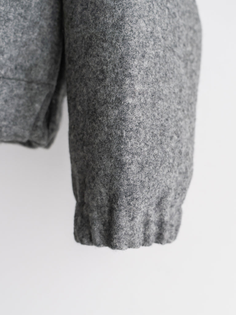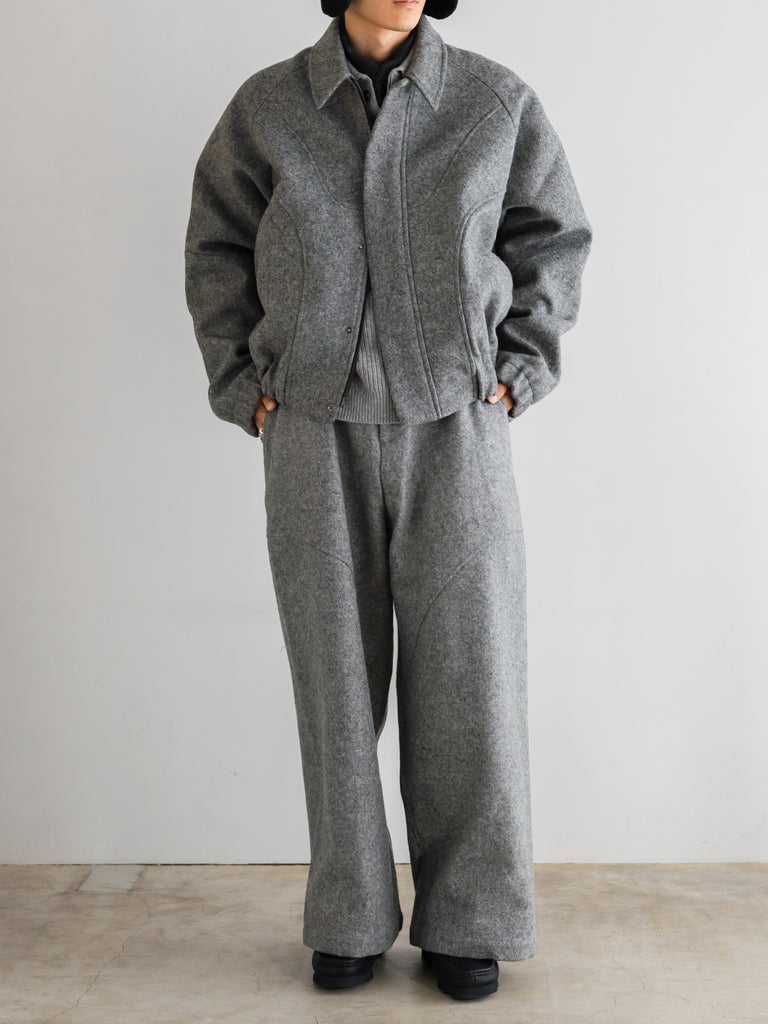 英国ツイードのヘリンボーンウールを使用した、カーブしたパネルが特徴的なクロップド丈ジャケット。