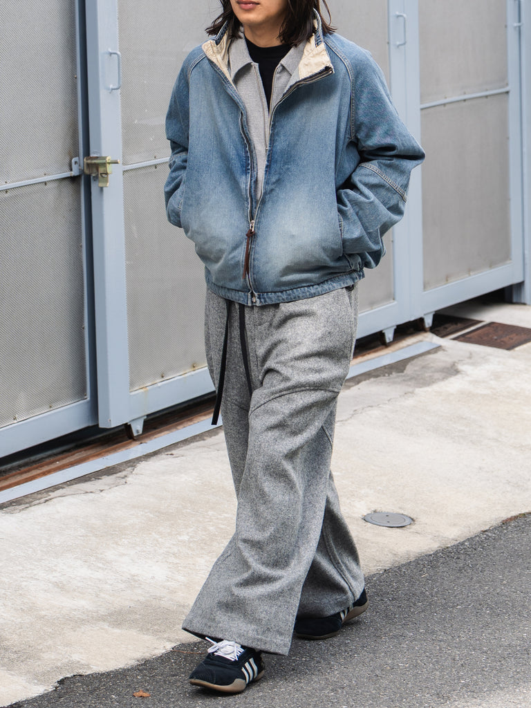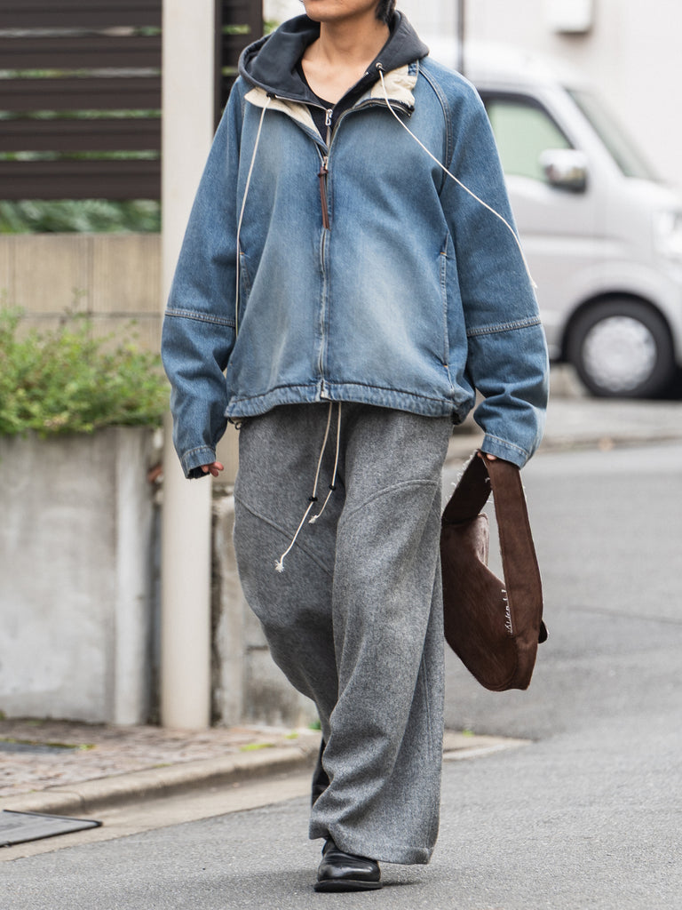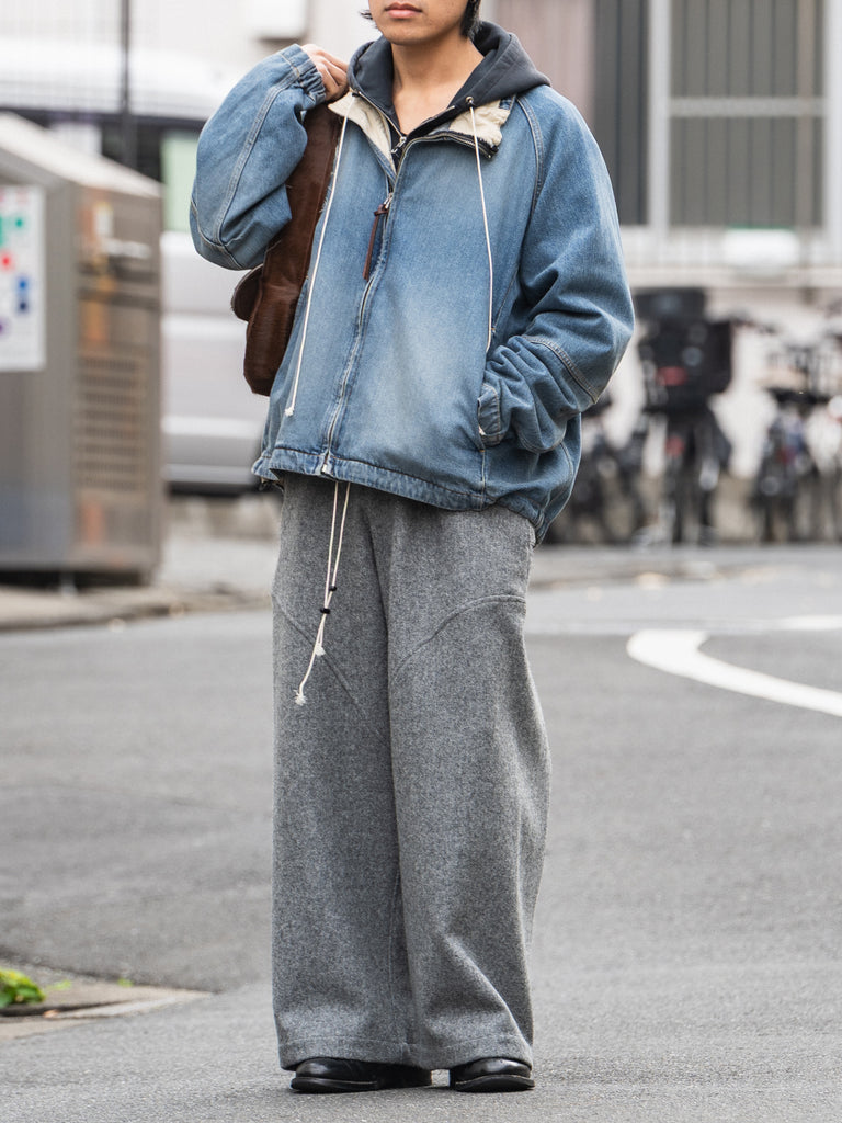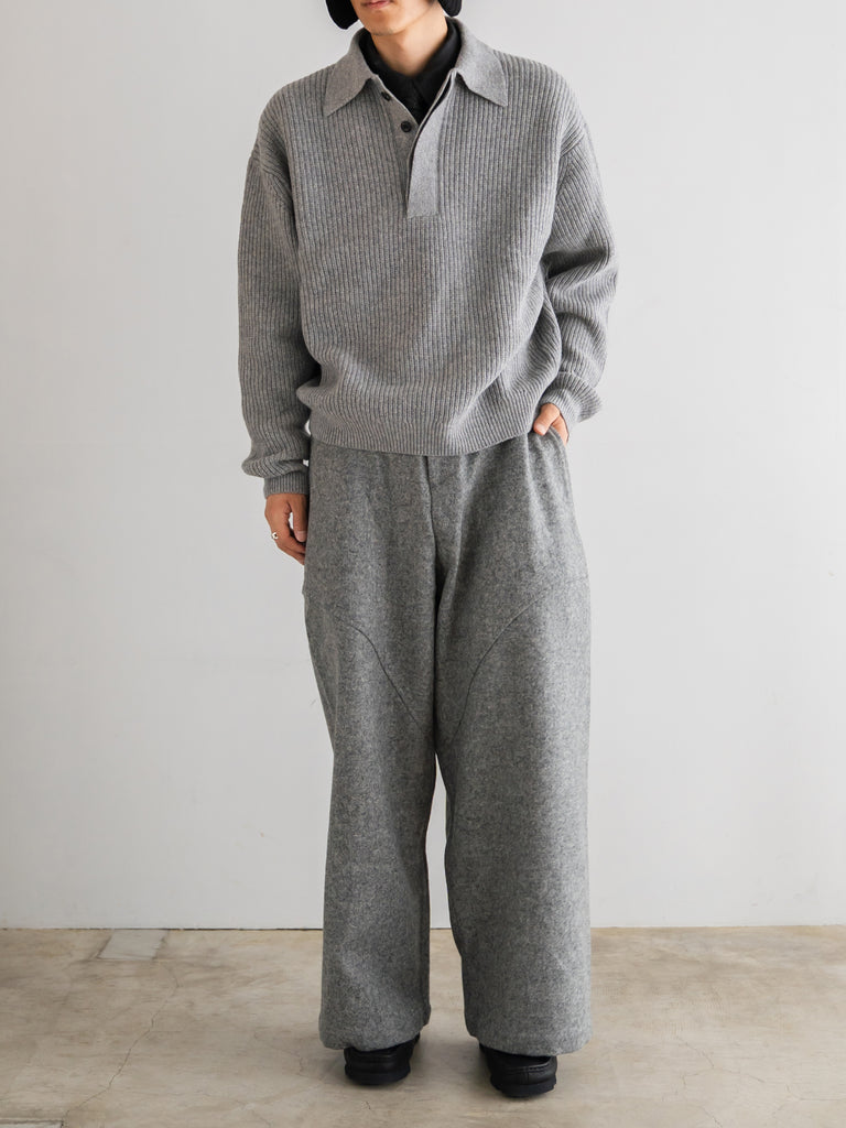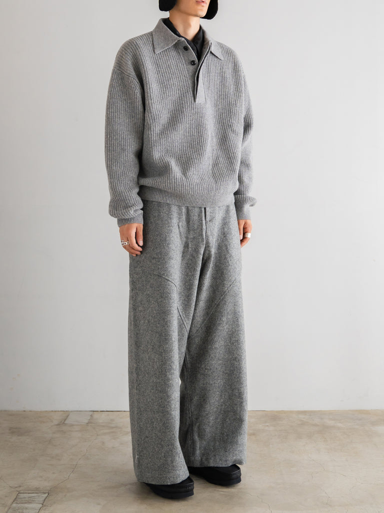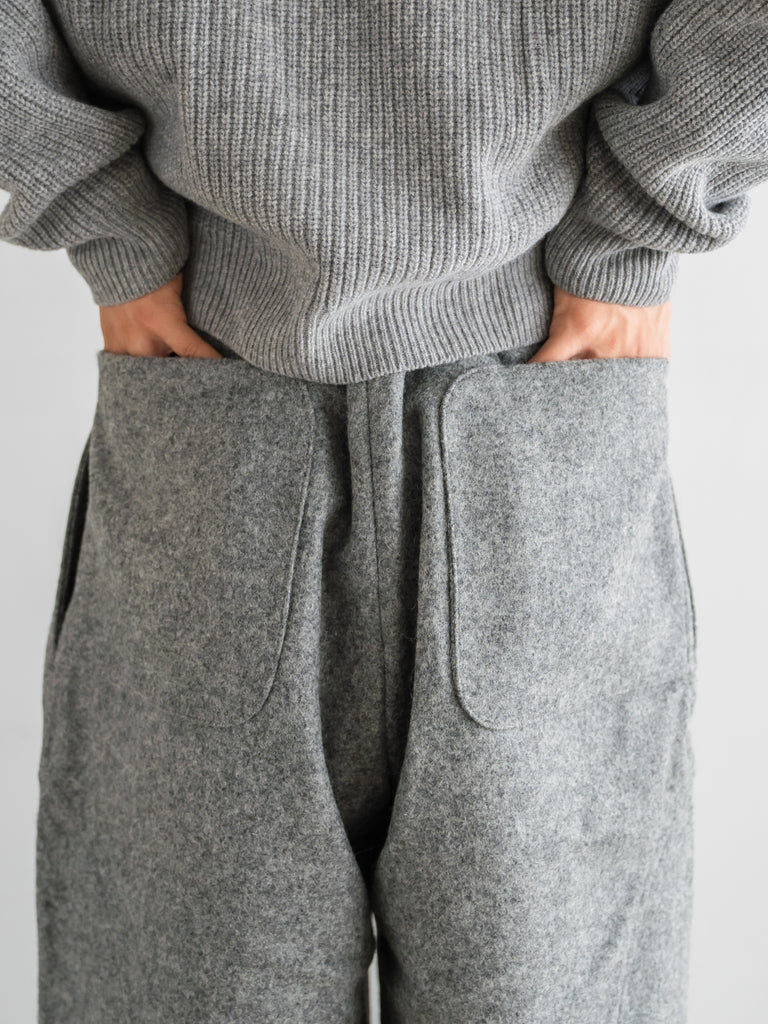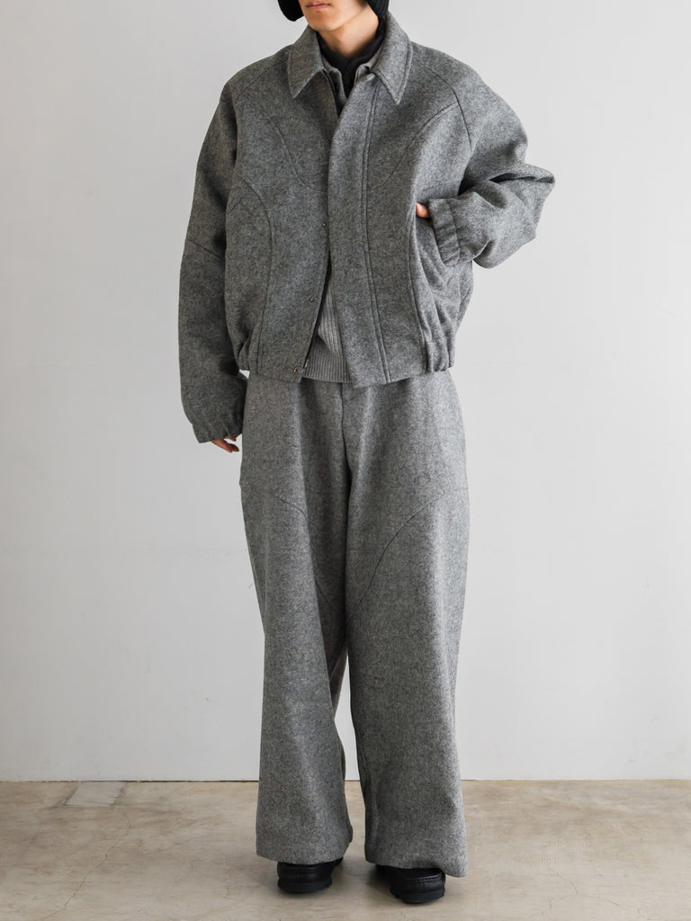 英国ツイードのヘリンボーンウールを使用した、カーブシームのディテールが美しいトラウザー。