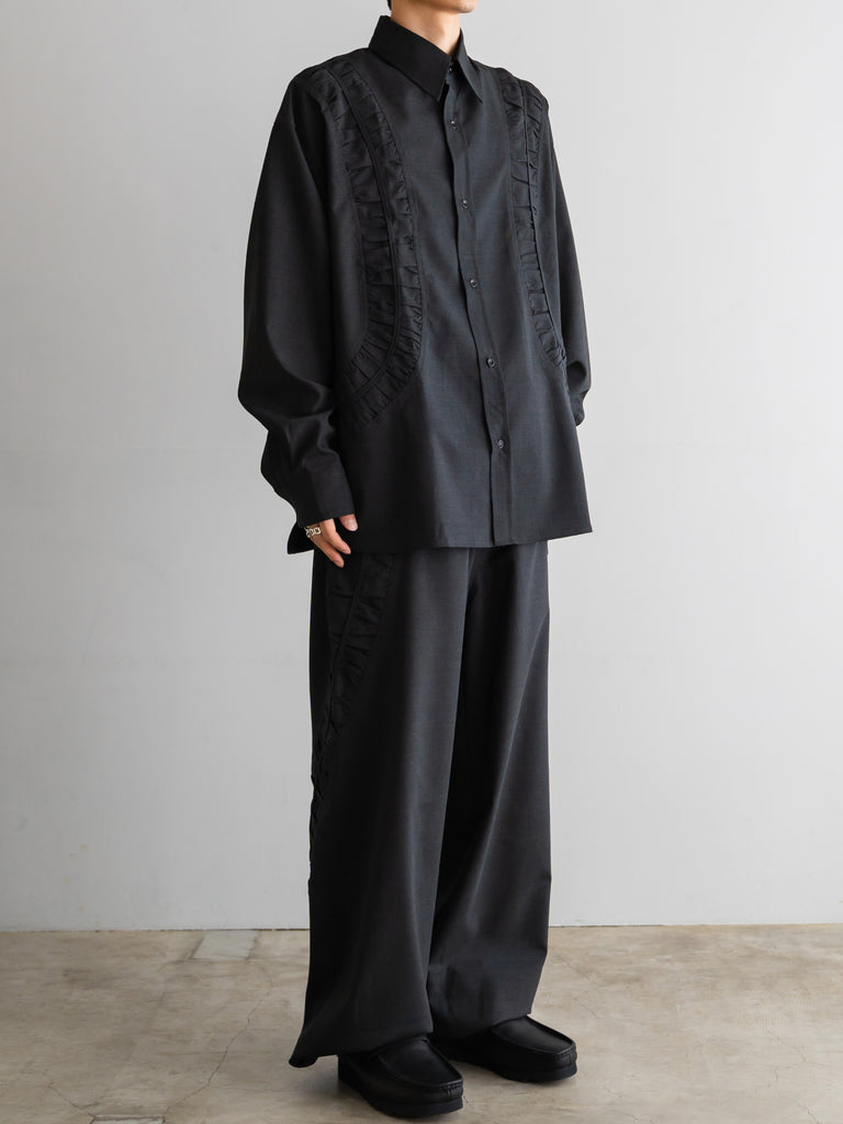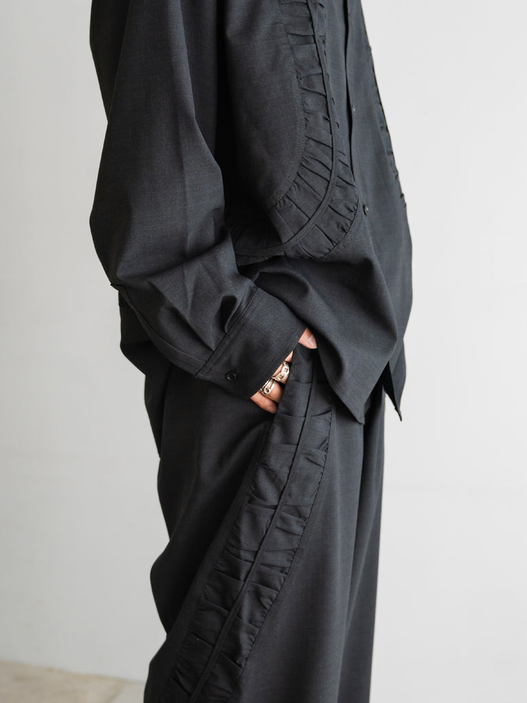 トロピカルウール混紡素材を使用した、オーバーサイズのシャツ。