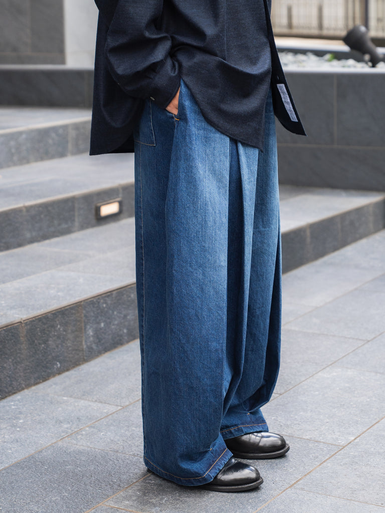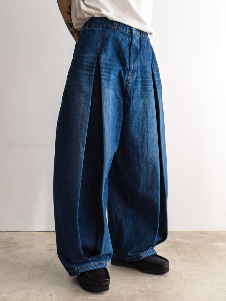 SAGE NATION - BOX PLEAT TROUSER DENIM INDIGO WASH