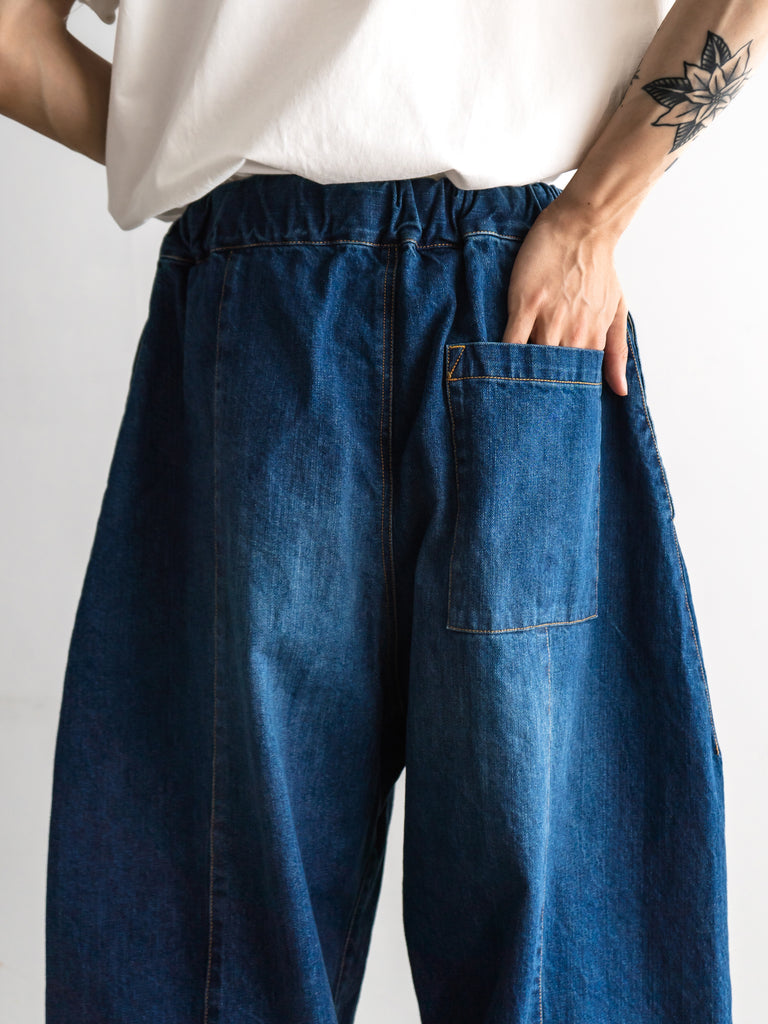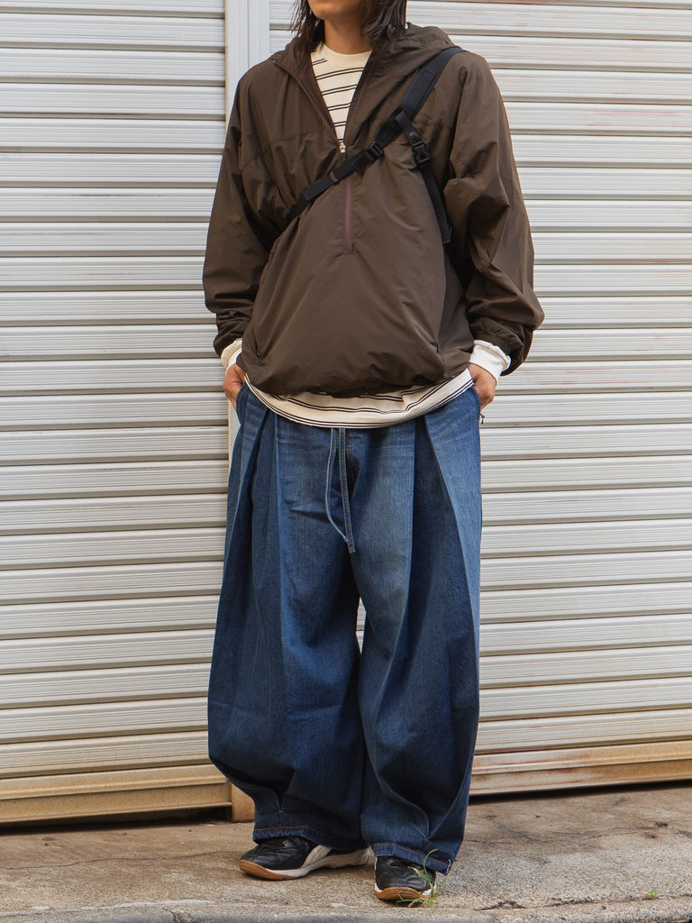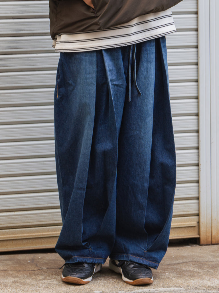 日本のデニム素材を使用したイージー仕様のワイドパンツ。