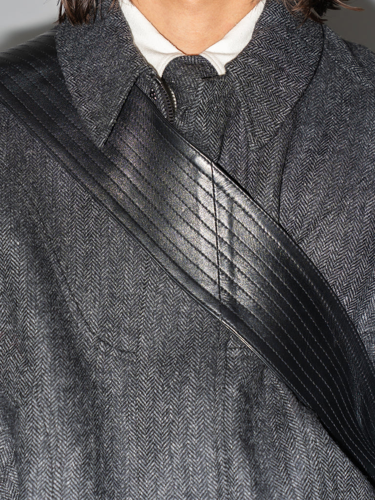 厚みのあるマルチステッチのストラップには、コントラストの効いたメタルリベットが施されています。