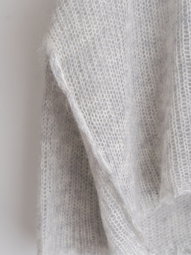 ナイロン、モヘア、ウールをミックスした糸を使用しています。