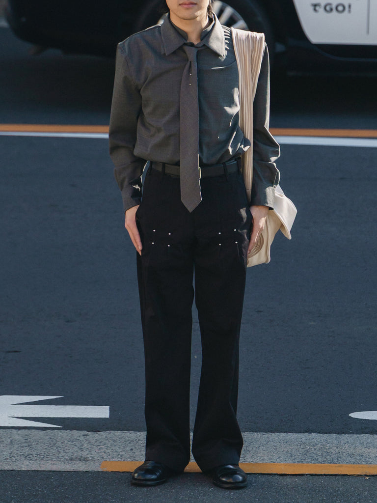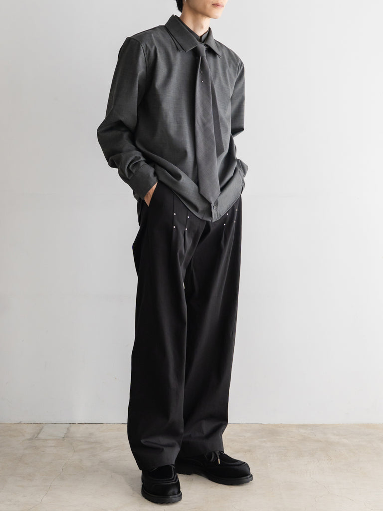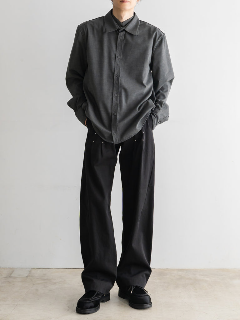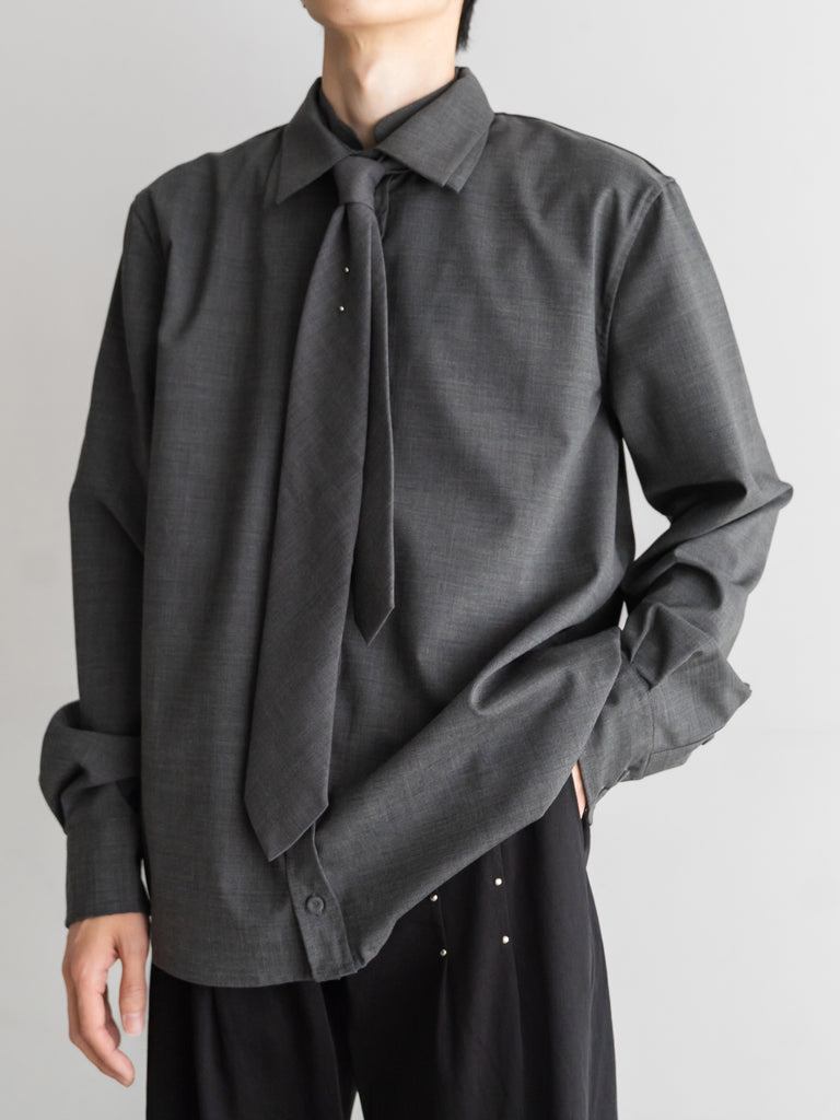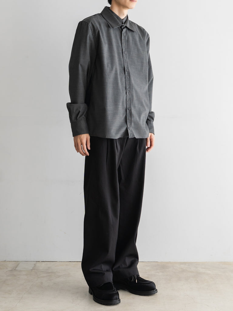 クラシックなシャツの技法をベースにしながら、現代的なシルエットと構造で仕上げられており、上品さと個性を兼ね備えたスタイルを実現します。