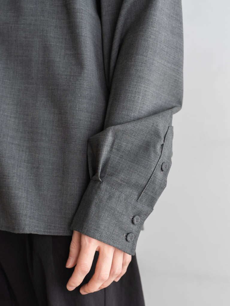 素材は軽やかで通気性に優れたグレーカラーのウール素材を使用。