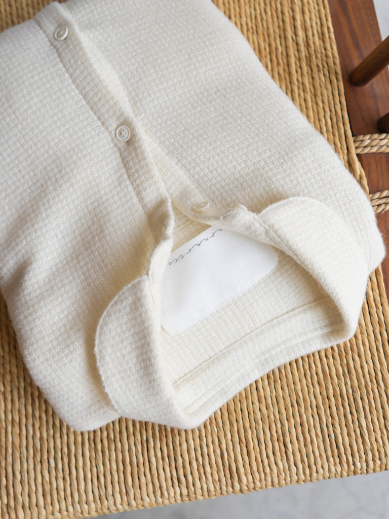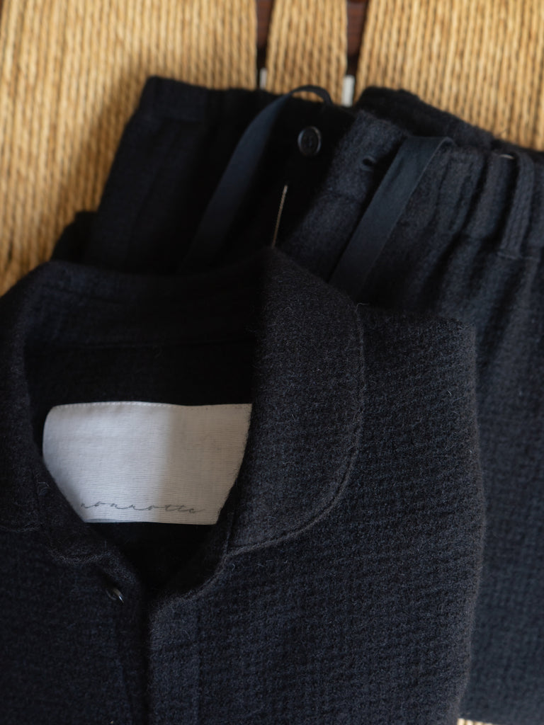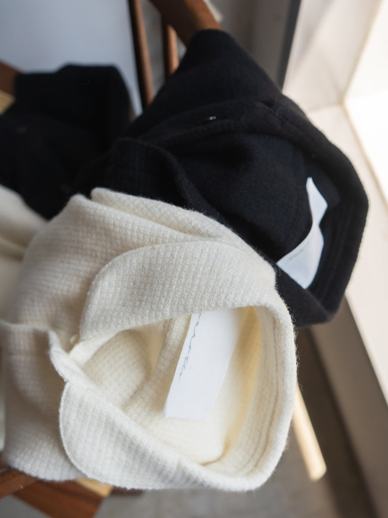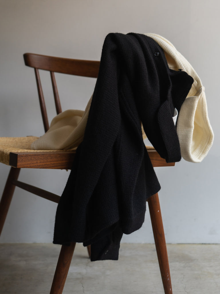 見た目はまるでニットなのに、織物なので僕の好きなパターンワークもできるし、シルエットも出せる。