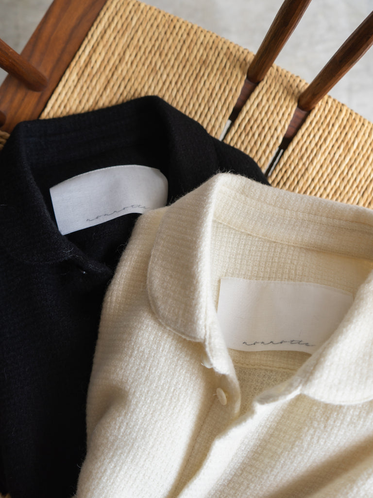 クラシックな中に光るモダンな装いをイメージし、クローゼットにあるさまざまなスタイルに刺さるこの素材でラウンドカラーを是非着てみたいと感じました。