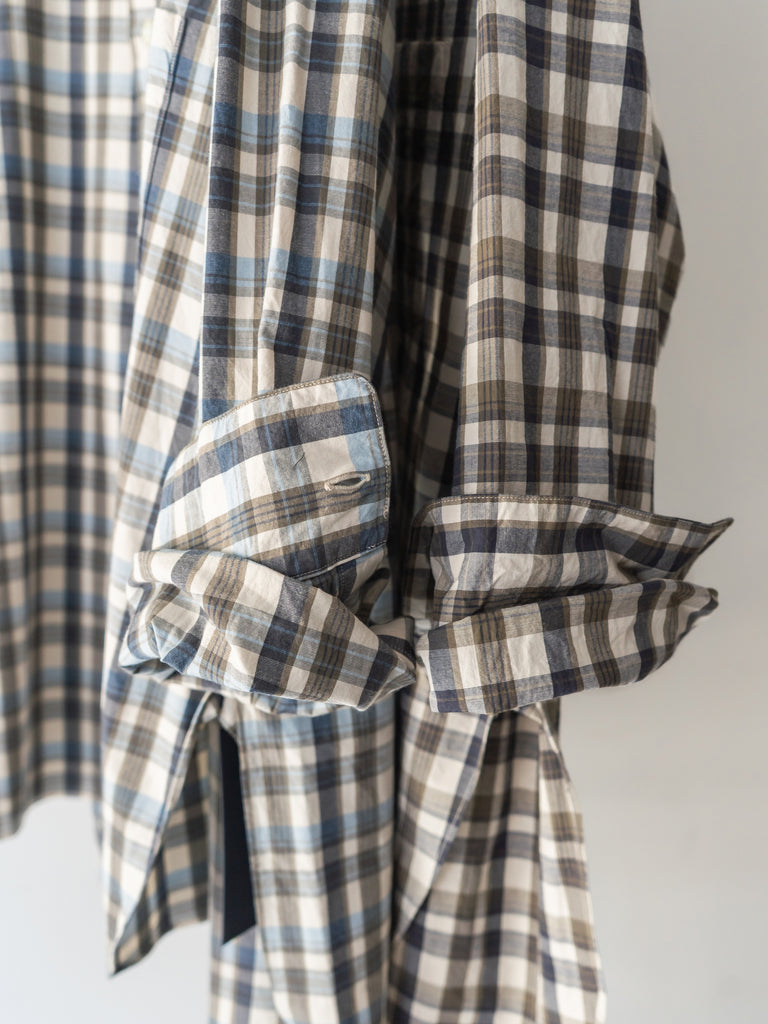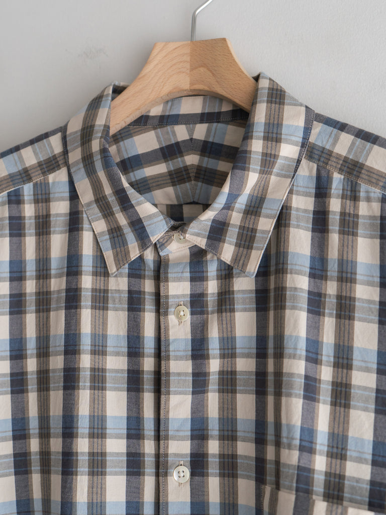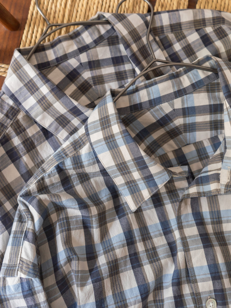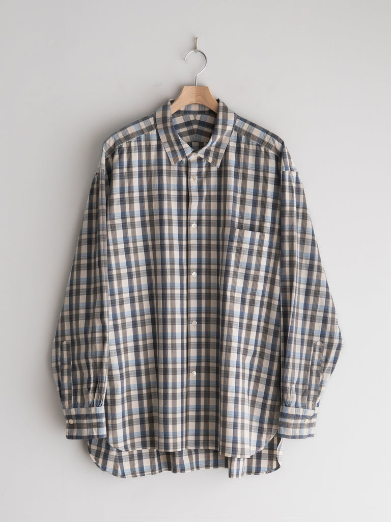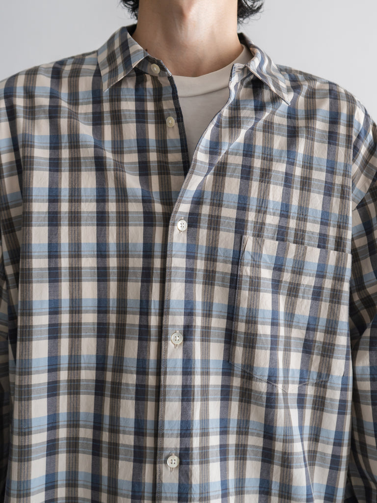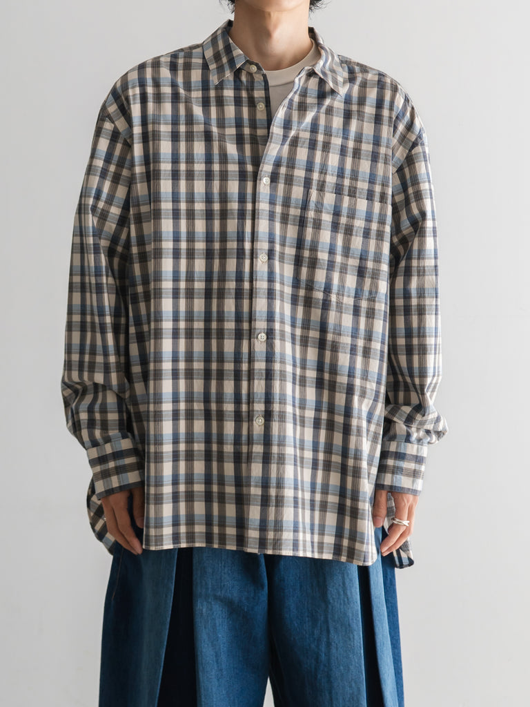 ゆったりしたシルエットが特徴のチェック柄レギュラーカラーシャツ。