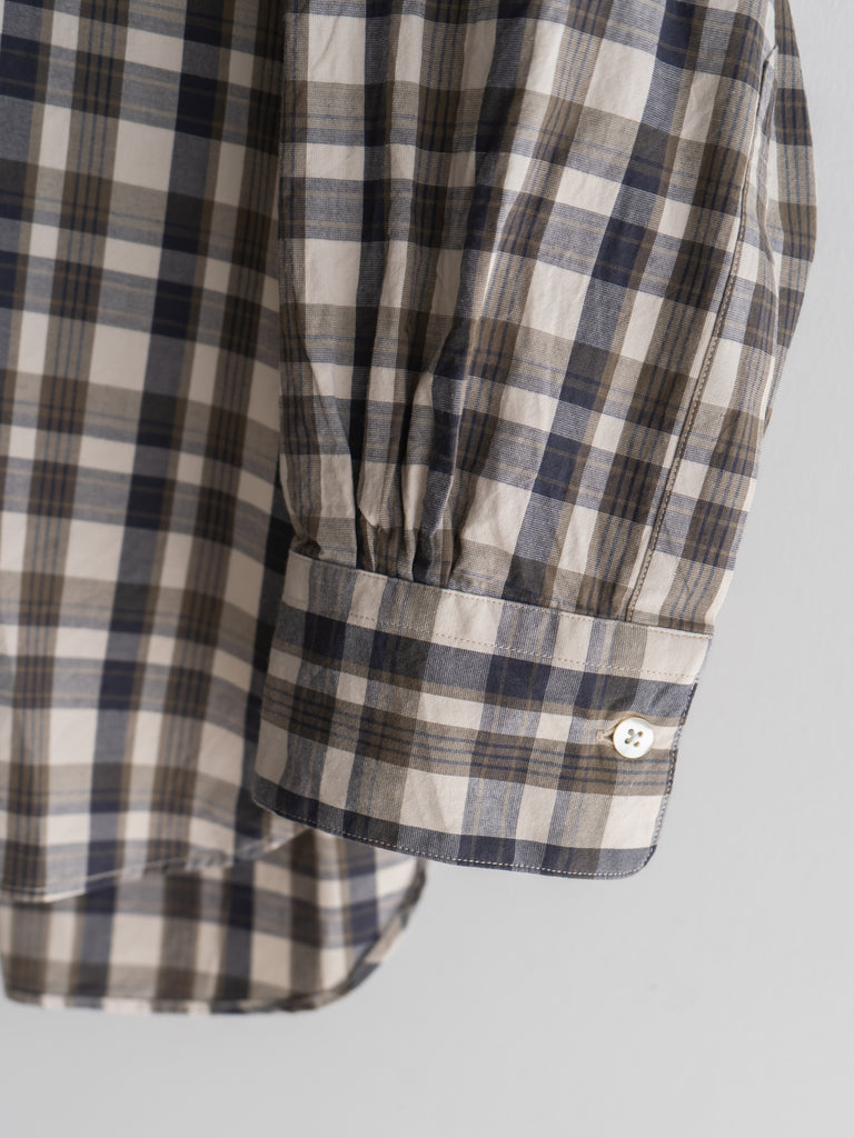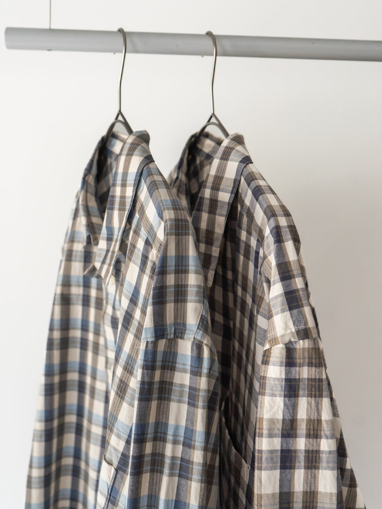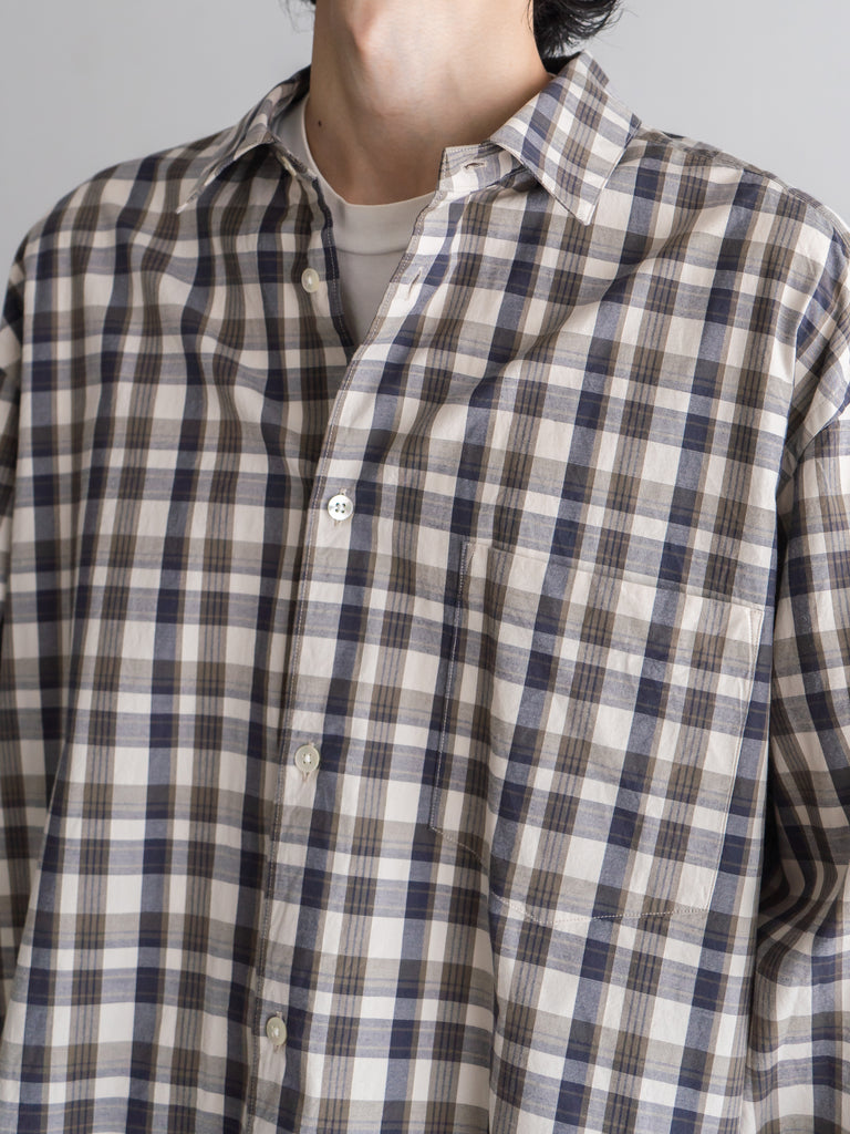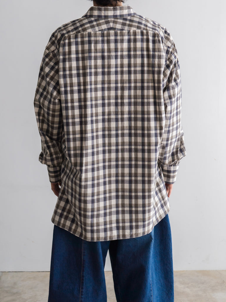 ゆったりしたシルエットが特徴のチェック柄レギュラーカラーシャツ。